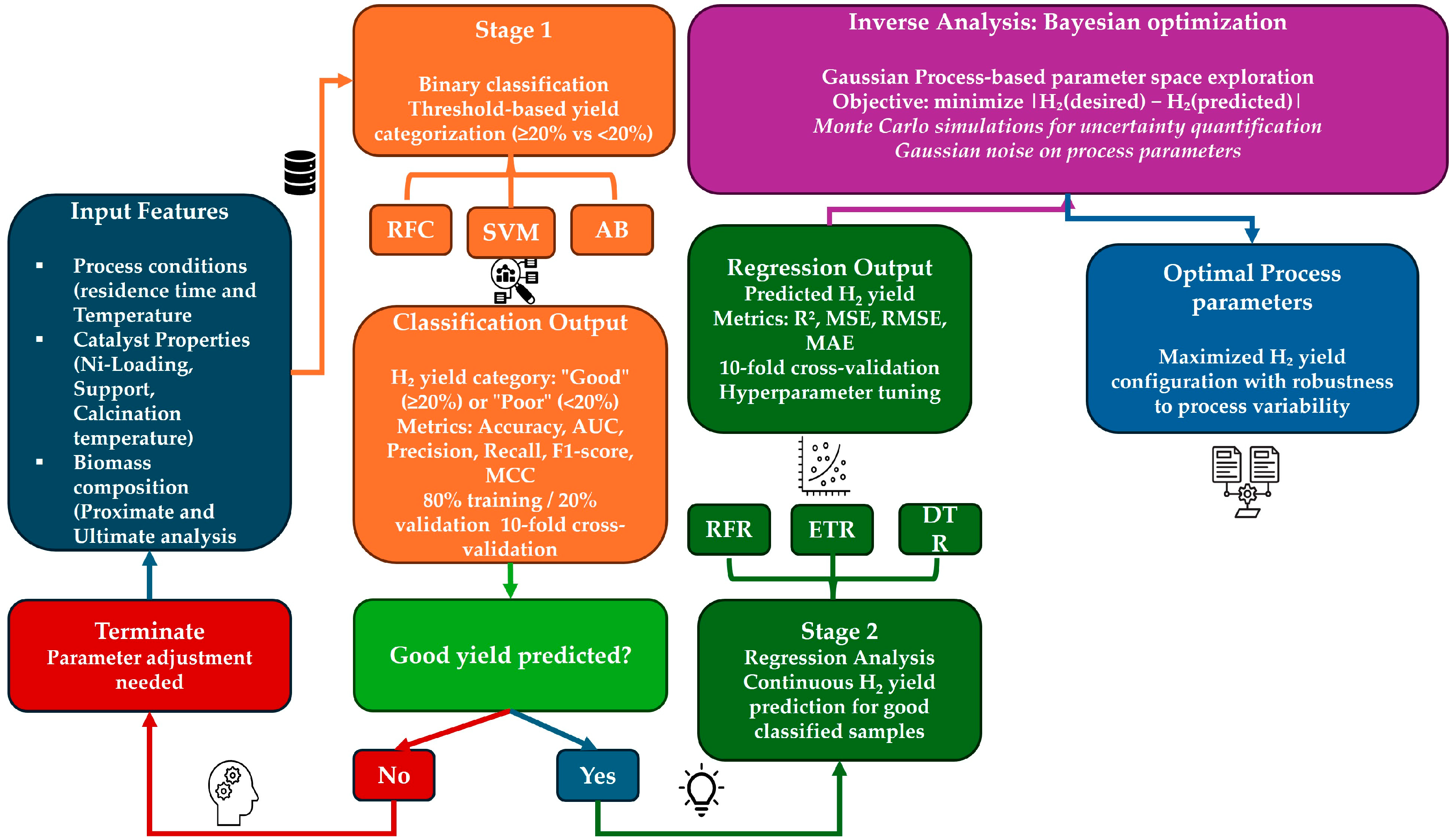Chicago/Turabian StylePersaud, Vishal V., Abderrachid Hamrani, Medeba Uzzi, and Norman D. H. Munroe. 2026. "Machine Learning-Guided Inverse Analysis for Optimal Catalytic Pyrolysis Parameters in Hydrogen Production from Biomass" Catalysts 16, no. 1: 105. https://doi.org/10.3390/catal16010105