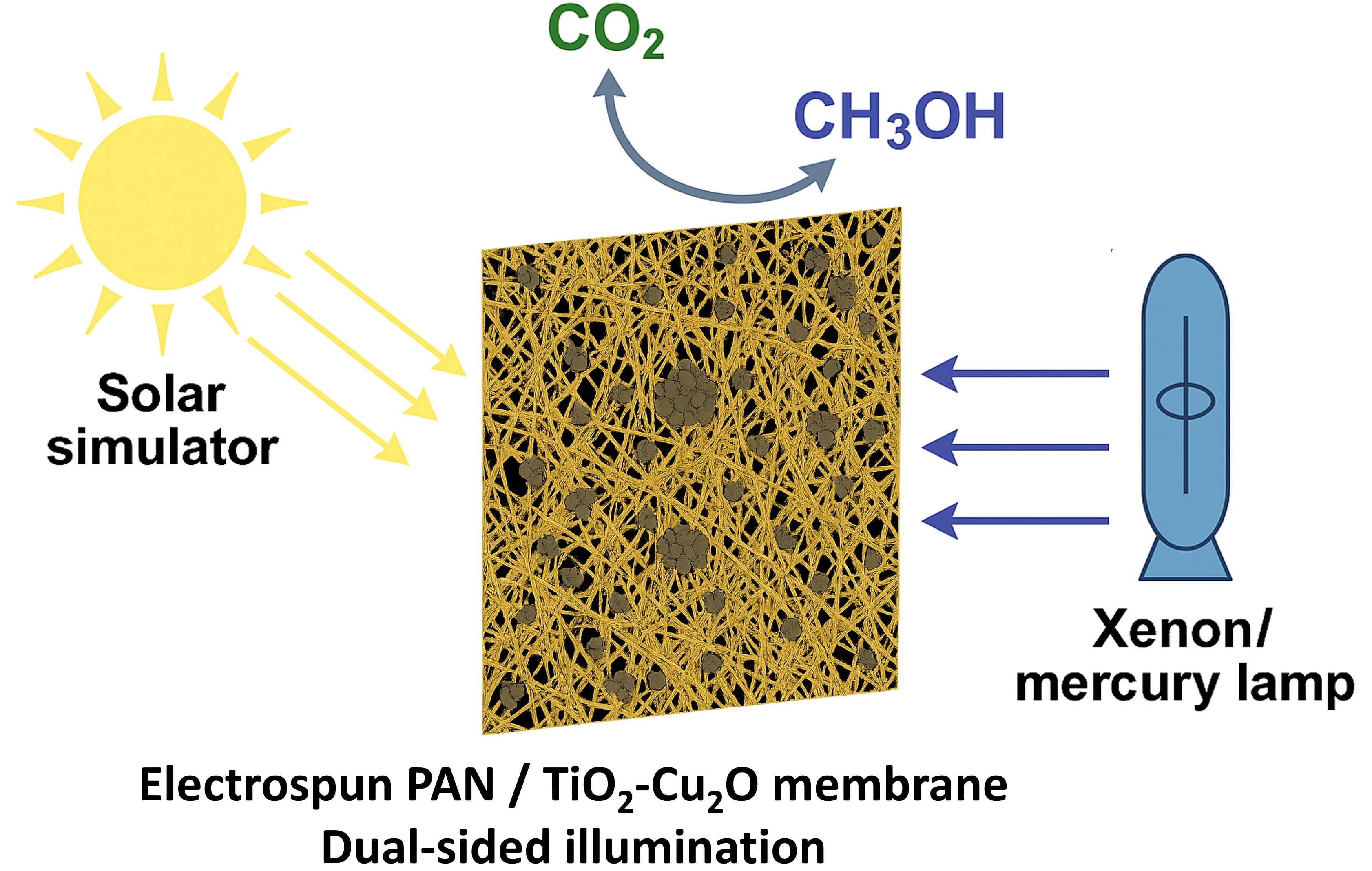 Double-Sided Illuminated Electrospun PAN TiO2-Cu2O Membranes for Enhanced CO2 Photoreduction to Methanol