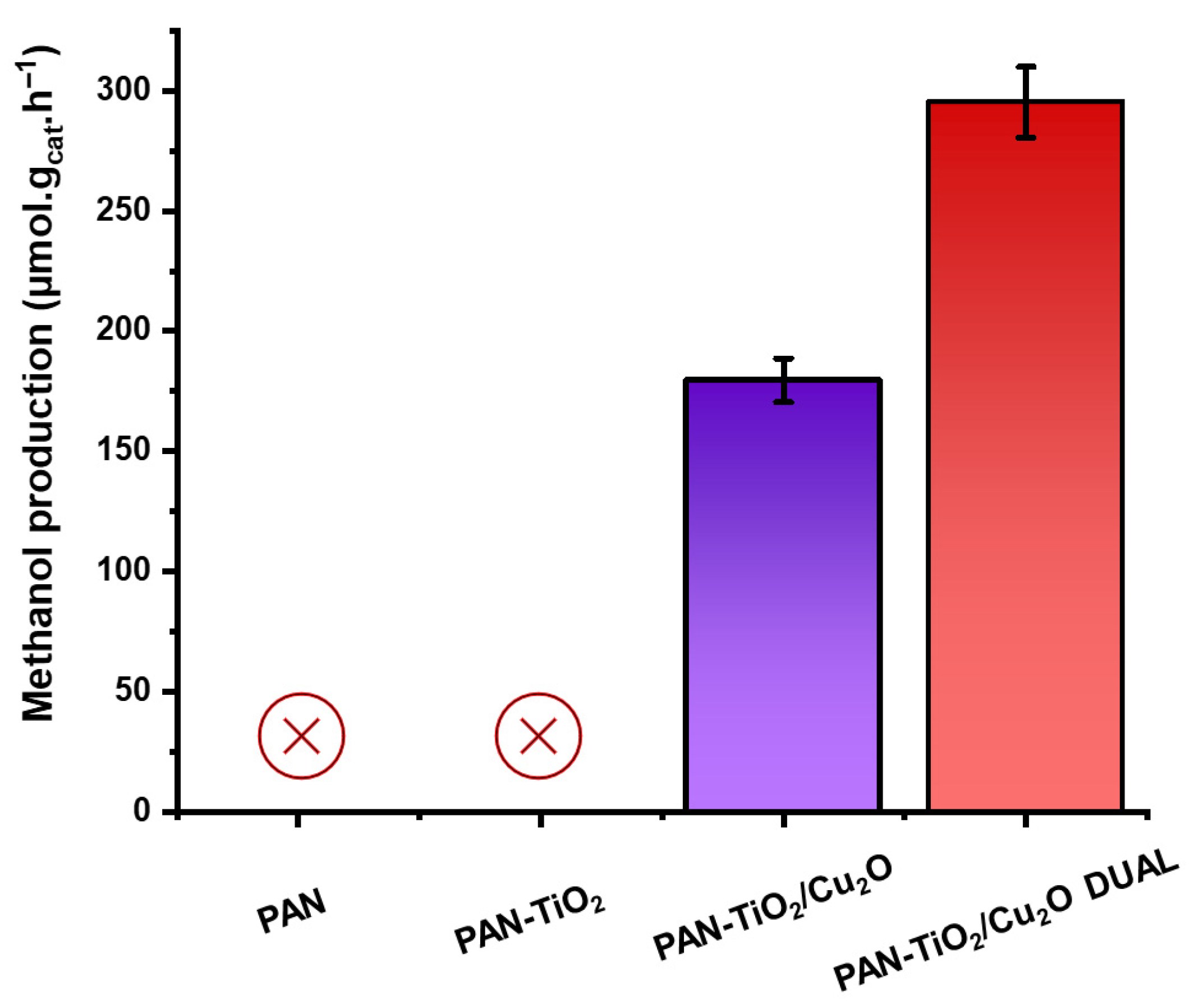 Grandcolas M. Double-Sided Illuminated Electrospun PAN TiO2-Cu2O Membranes for Enhanced CO2 Photoreduction to Methanol. Catalysts. 2026; 16(1):107. https://doi.org/10.3390/catal16010107