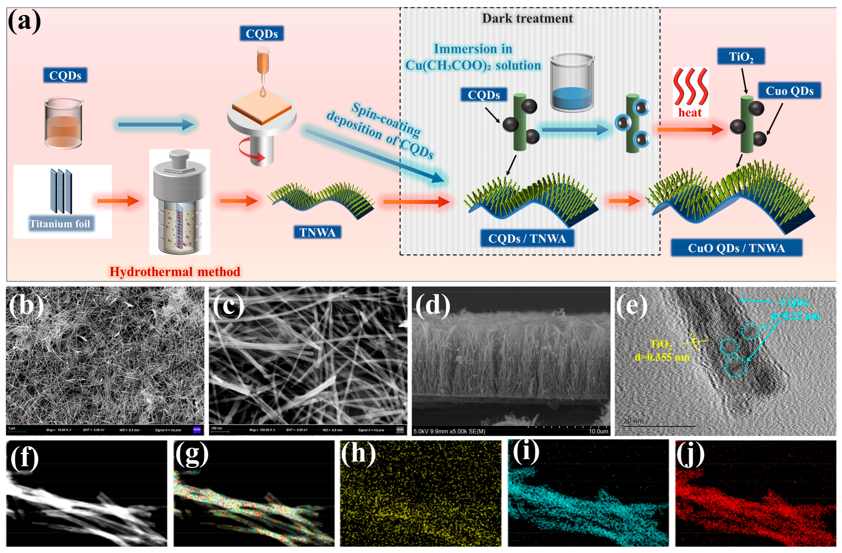 In Situ Anchoring of CQDs-Induced CuO Quantum Dots on Ultrafine TiO2 Nanowire Arrays for Enhanced Photocatalysis