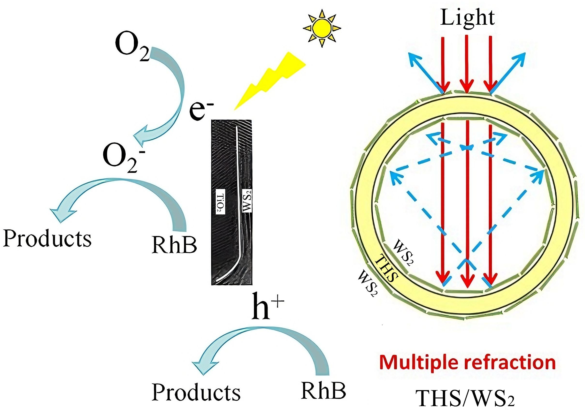 2.9. Analysis of the Mechanism of Photocatalytic Degradation of RhB by THS/WS2