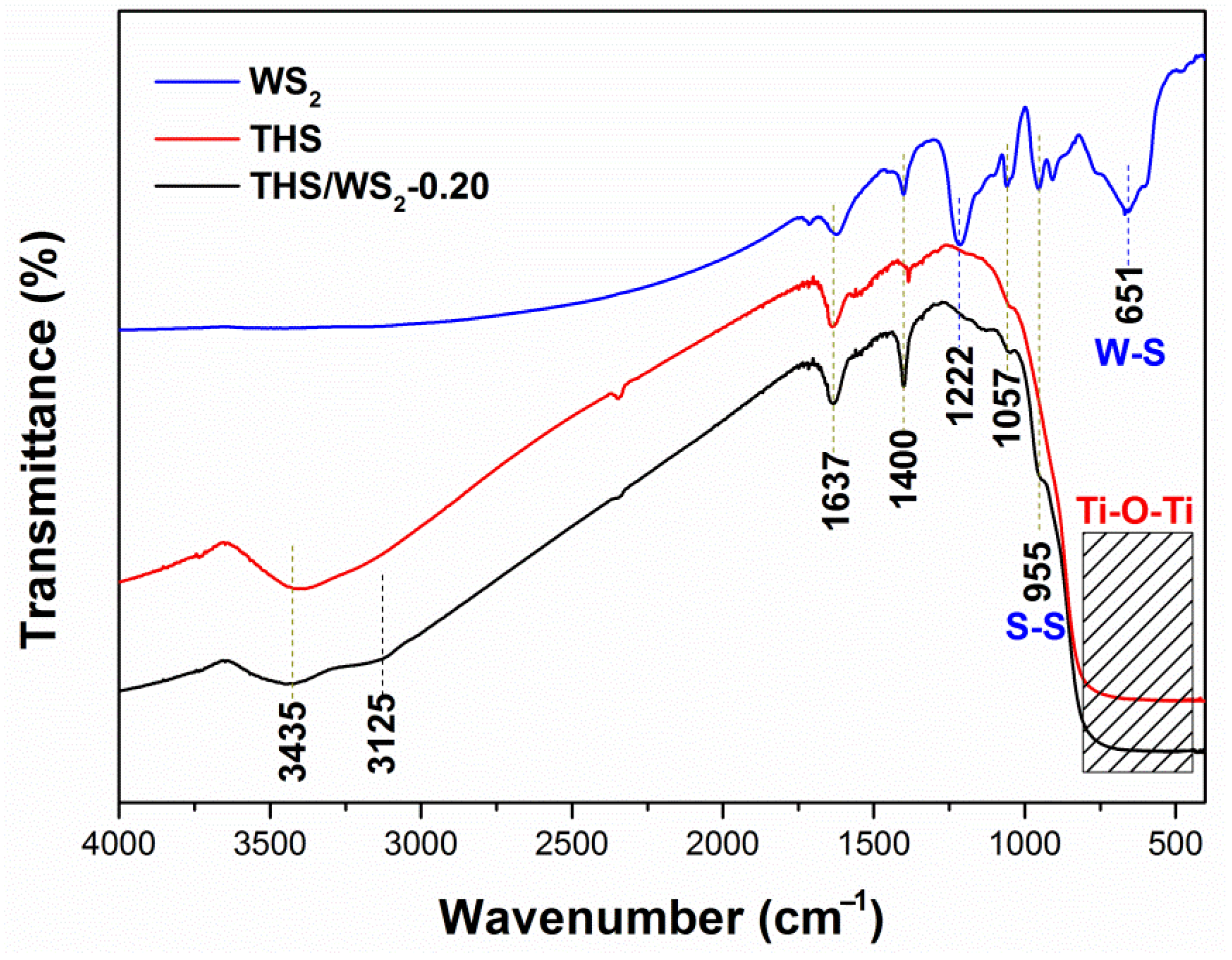 3.1. Preparation of THS/WS2 Composites