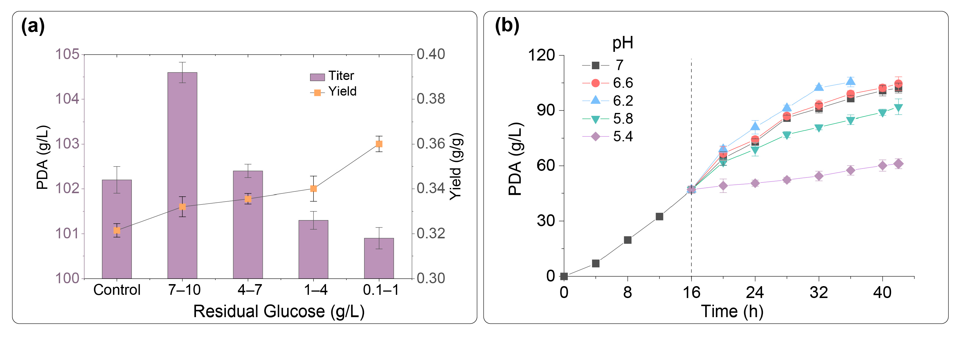 - Liu, C.; Gao, C.; Song, L.; Li, X.; Chen, X.; Wu, J.; Song, W.; Wei, W.; Liu, L. Fine-tuning pyridoxal 5′-phosphate synthesis in Escherichia coli for cadaverine production in minimal culture media. ACS Synth. Biol. 2024, 13, 1820–1830. [Google Scholar] [CrossRef]