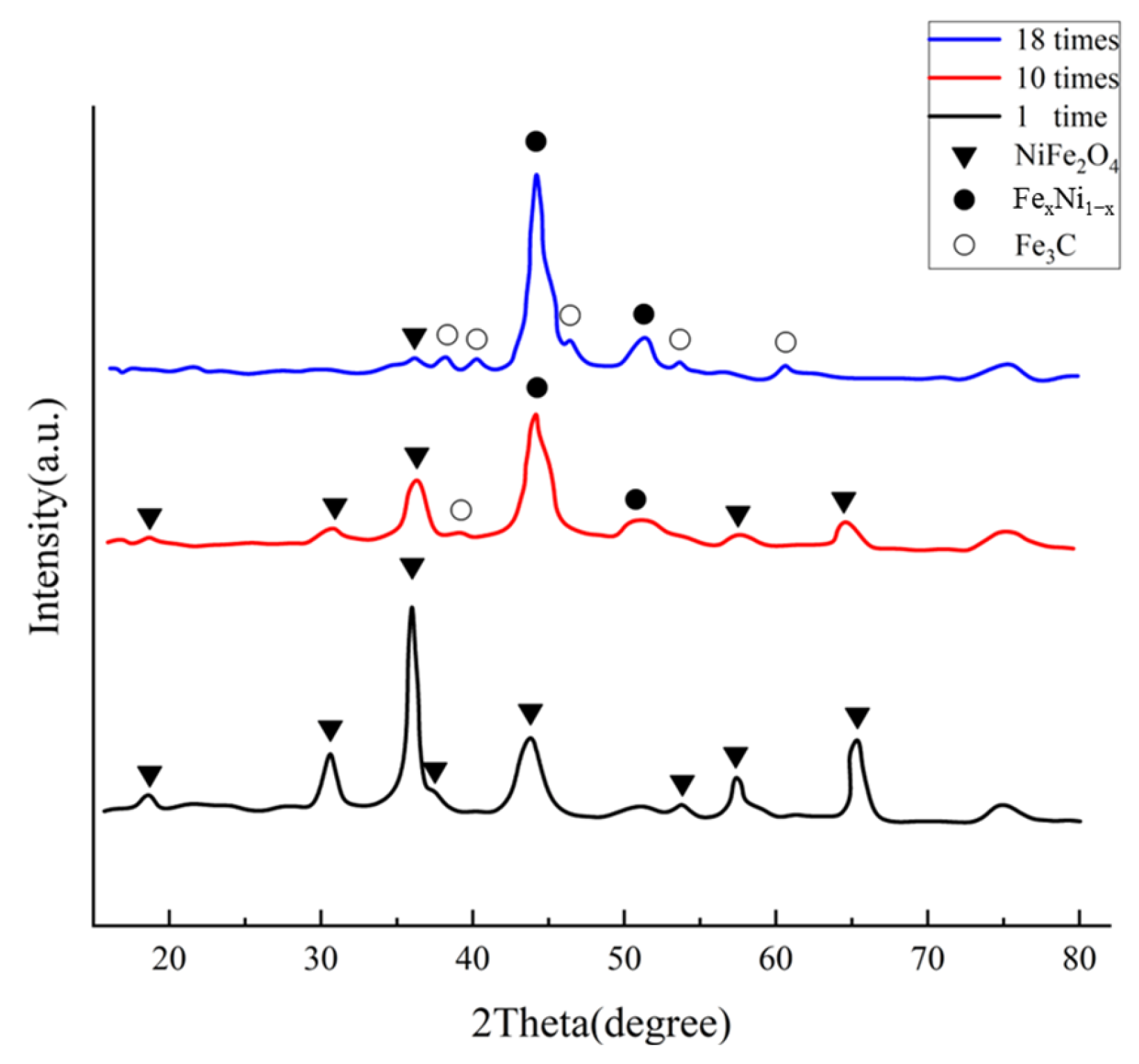 Figure 1, it can be seen that the main peak positions of the two samples are consistent with the standard spectrum of NiFe