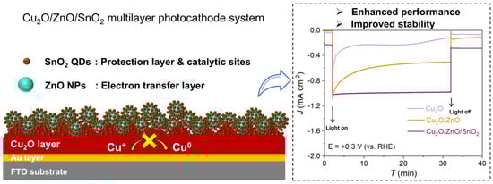 Chicago/Turabian StyleYan, Jiawei, Kai Takagi, Zhidong Wei, Masaya Motodate, Jiasheng Chi, Yong Zhu, Chiaki Terashima, Wenfeng Shangguan, and Akira Fujishima. 2026. "Sequential Multilayer Design with SnO2-Layer Decoration for Inhibiting Photocorrosion of Cu2O Photocathode" Catalysts 16, no. 1: 37. https://doi.org/10.3390/catal16010037