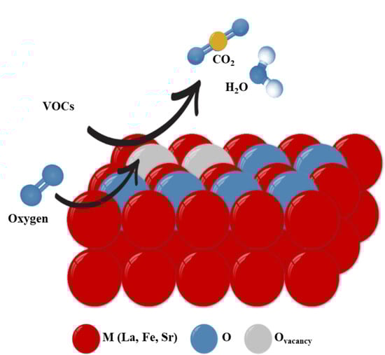 13], perovskite catalysts with lanthanum as the A-site ion were used to convert or reduce aldehydes and ketones, and other gaseous organic substances. Since then, researchers have thoroughly examined their catalytic activity and effectivity in removing VOCs [