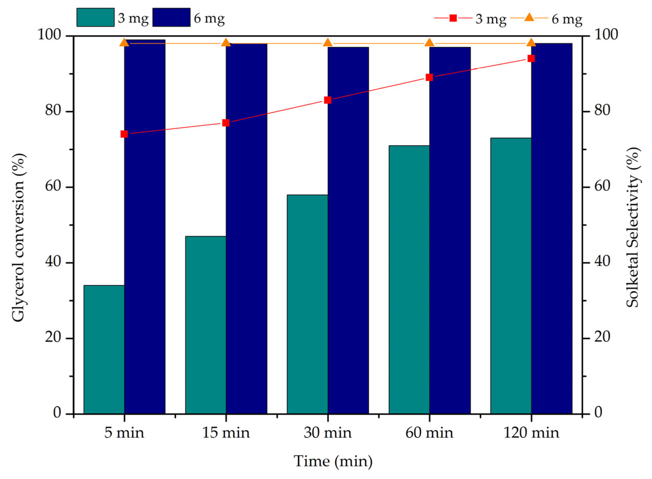 - Ferreira, P.; Fonseca, I.M.; Ramos, A.M.; Vital, J.; Castanheiro, J.E. Valorisation of glycerol by condensation with acetone over silica-included heteropolyacids. Appl. Catal. B Environ. 2010, 98, 94–99. [Google Scholar] [CrossRef]