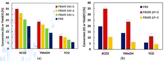 | Sweep/Reacting Gases SW [-] | Pressure Difference ΔP [bar] | Temperature [°C] | PBR | PBMR | PBR | PBMR | PBR | PBMR | |