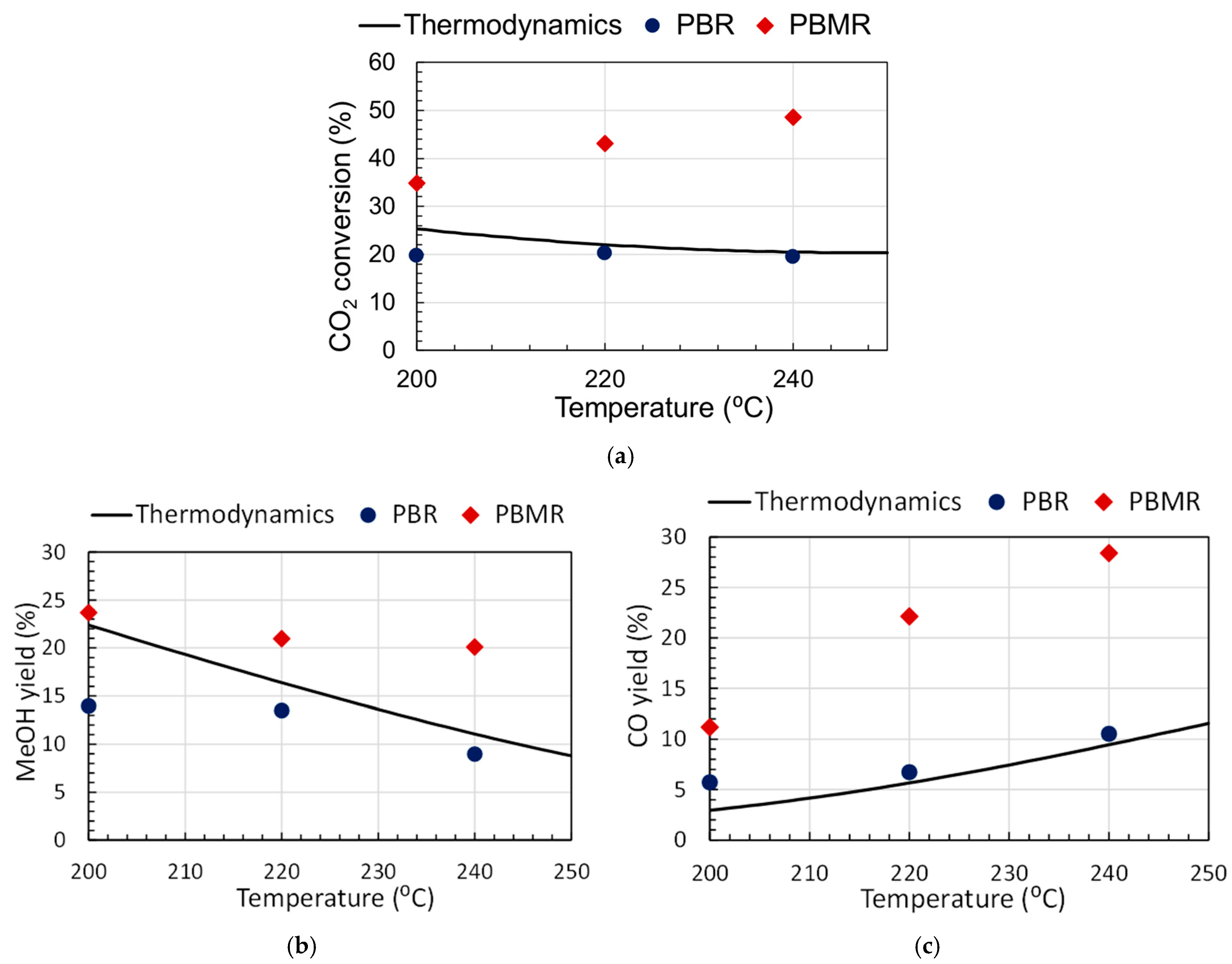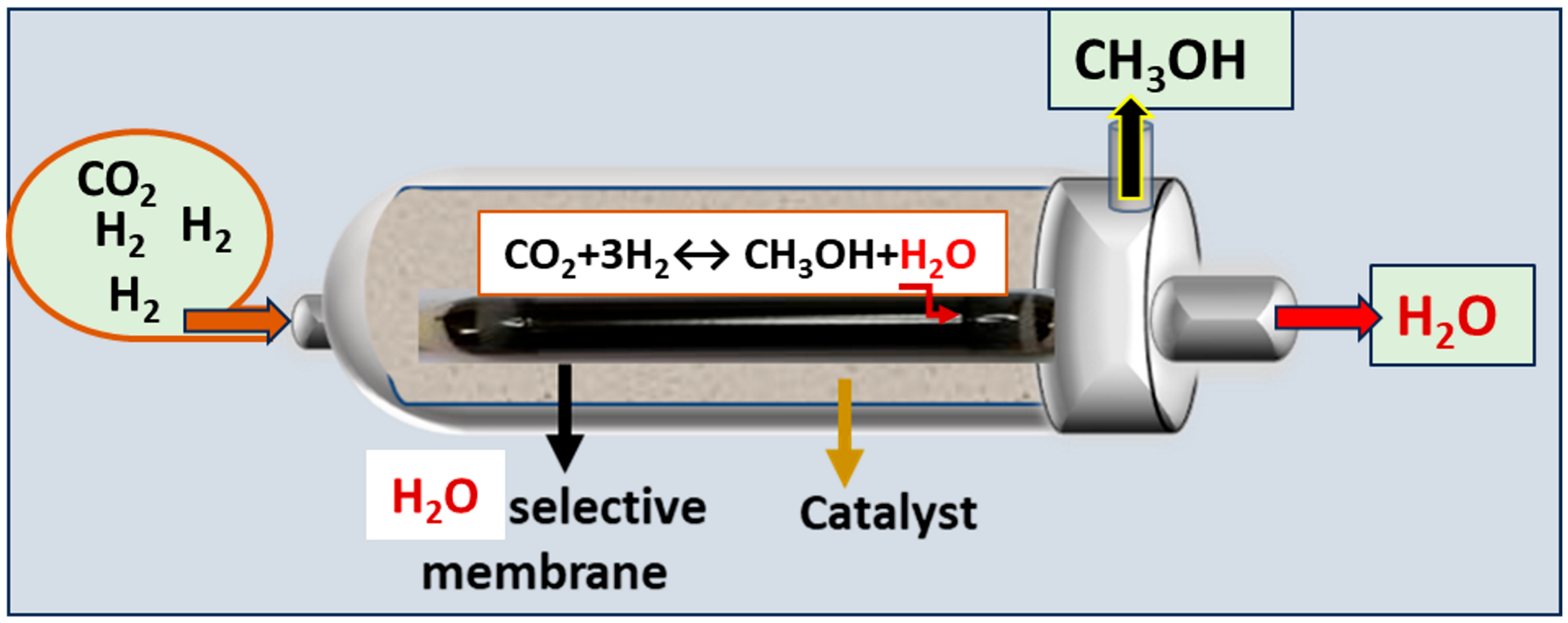 - Mohammed, M.G.; Hashim, N.A.; Daud, W.M.A.W.; Hartley, U.W.; Aroua, M.K.; Wohlrab, S. Overview of the latest progress and prospects in the catalytic hydrogenation of carbon dioxide (CO2) to methanol in membrane reactors. Int. J. Hydrogen Energy 2024, 77, 936–957. [Google Scholar] [CrossRef]