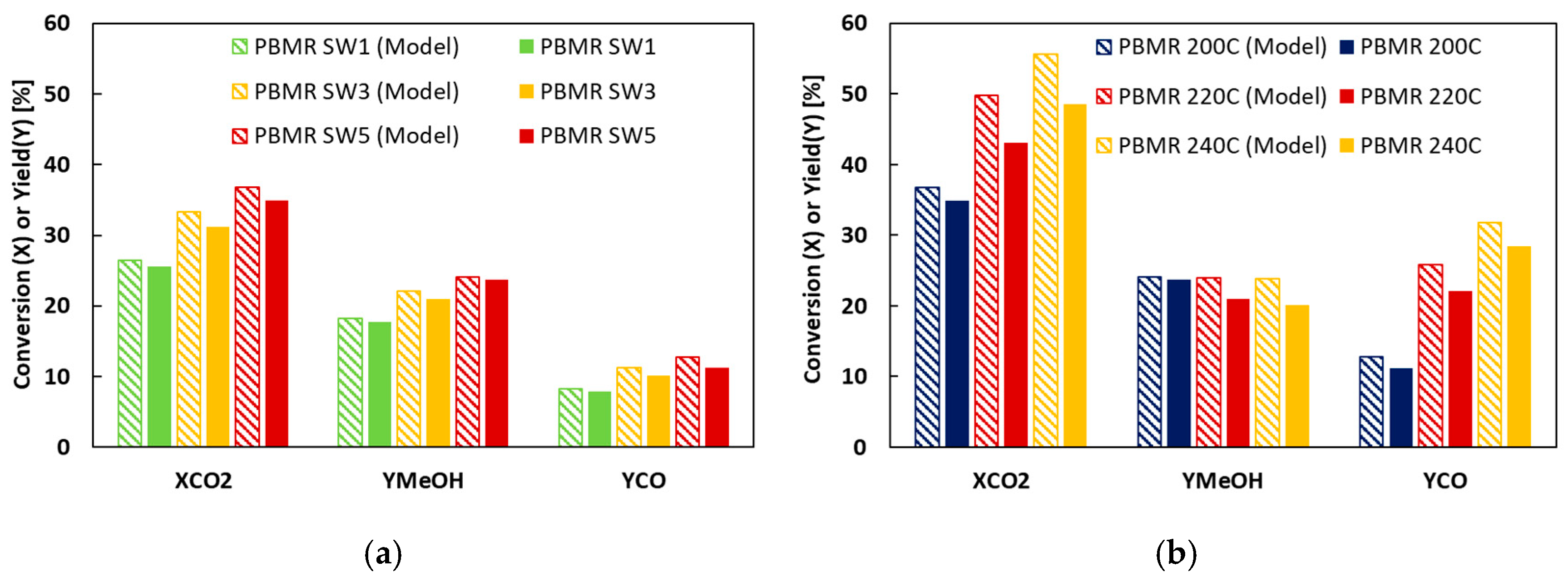 - Poto, S.; Llosa Tanco, M.A.; Pacheco Tanaka, D.A.; Neira d′Angelo, M.F.; Gallucci, F. Experimental investigation of a packed bed membrane reactor for the direct conversion of CO2 to dimethyl ether. J. CO2 Util. 2023, 72, 102513. [Google Scholar] [CrossRef]