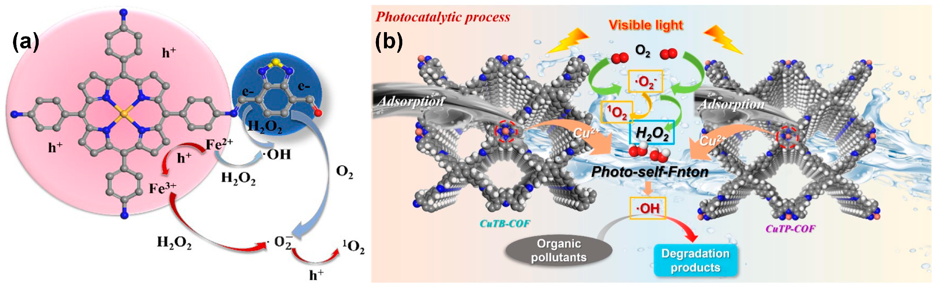 - Xu, Z.; Duan, Q.; Cui, X. Copper-porphyrin-based covalent organic frameworks for efficient water remediation: A synergistic strategy of adsorption and photo-self-Fenton degradation. Chem. Eng. J. 2025, 511, 162241. [Google Scholar] [CrossRef]