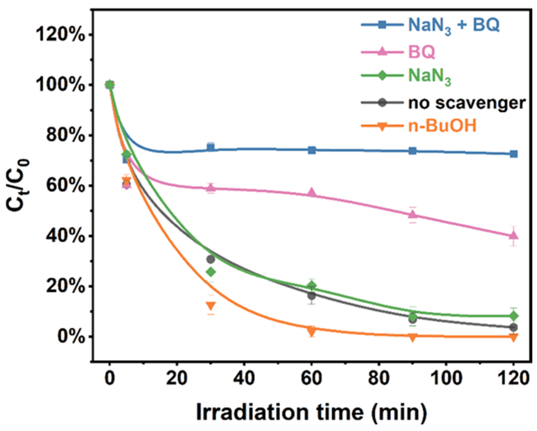 2.2.2. The Effect of Concentration of H2O2 and Scavengers