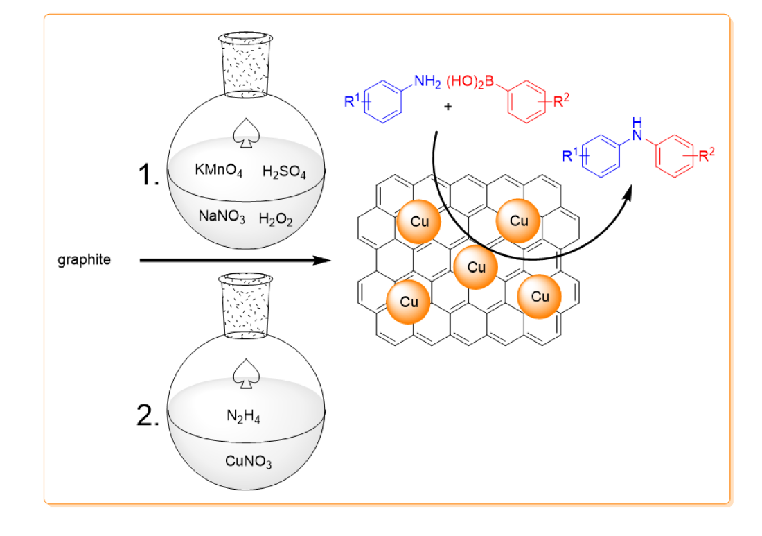 - Sharma, N.; Choudhary, A.; Kaur, M.; Sharma, C.; Paul, S.; Gupta, M. Modified Graphene Supported Ag-Cu NPs with Enhanced Bimetallic Synergistic Effect in Oxidation and Chan-Lam Coupling Reactions. RSC Adv. 2020, 10, 30048–30061. [Google Scholar] [CrossRef] [PubMed]