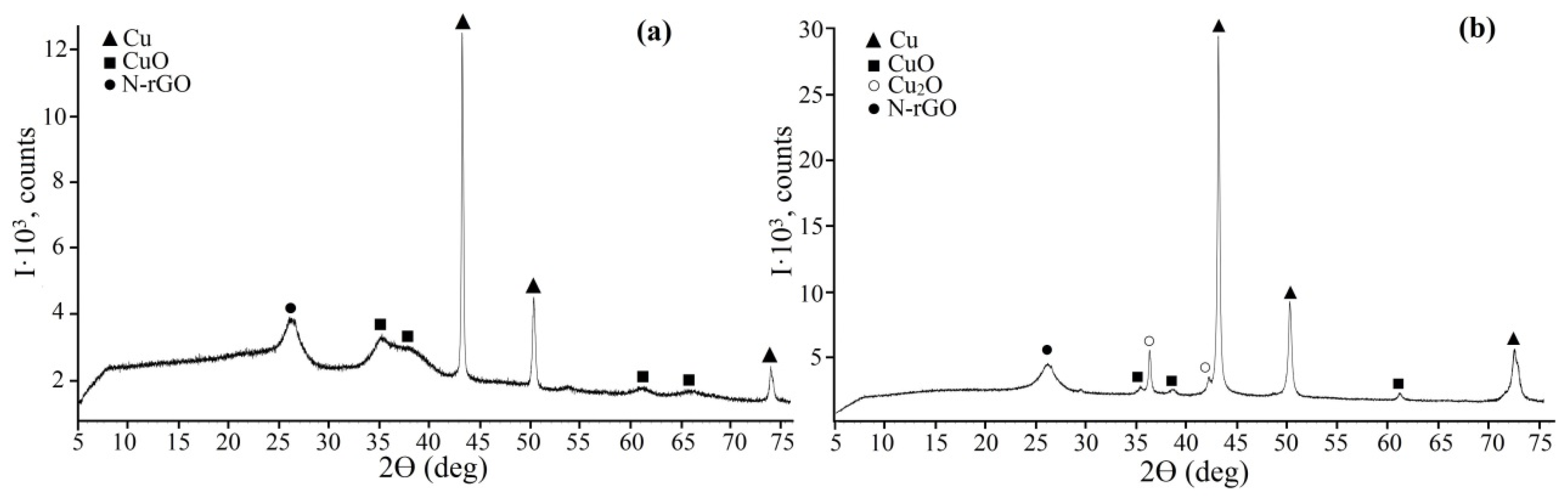 - Nascimento, J.R.; D’Oliveira, M.R.; Veiga, A.G.; Chagas, C.A.; Schmal, M. Synthesis of reduced graphene oxide as a support for nano copper and palladium/copper catalysts for selective NO reduction by CO. ACS Omega 2020, 5, 25568–25581. [Google Scholar] [CrossRef] [PubMed]