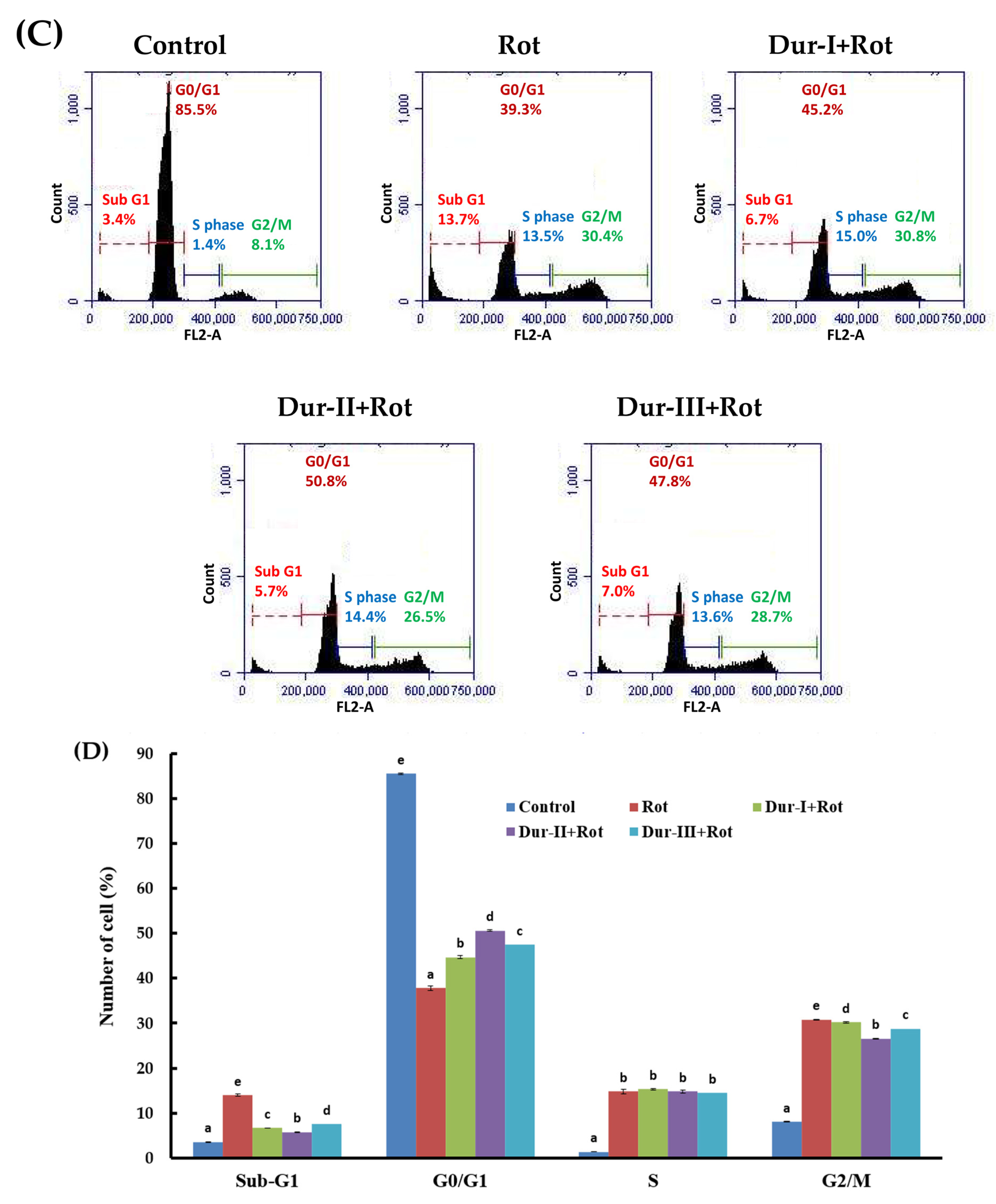 | Level of Bcl-2 (%) 1 | 87.7 ± 0.6 e | 65.2 ± 0.7 a | 69.3 ± 0.3 b | 73.5 ± 0.4 d | 71.4 ± 0.4 c |