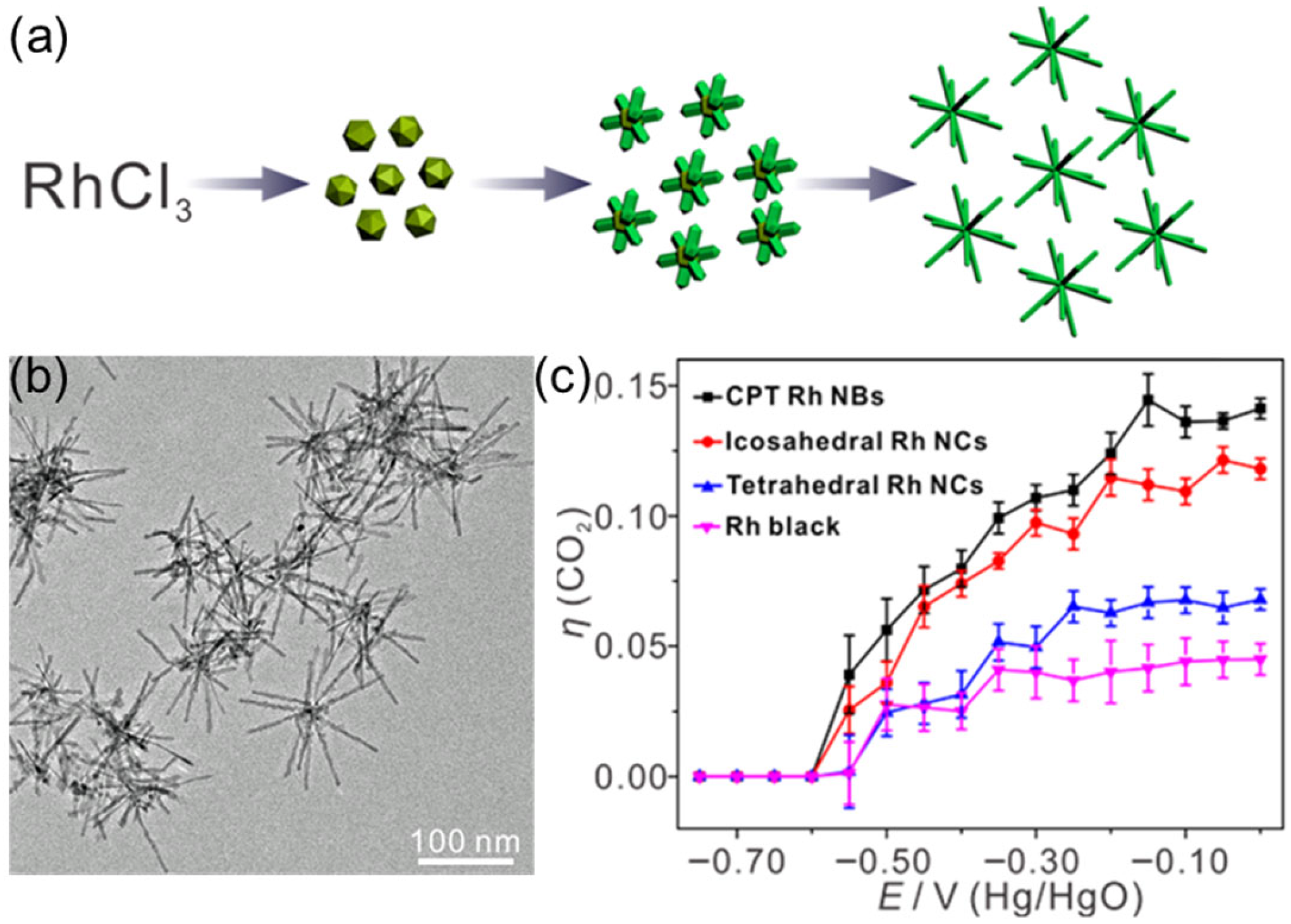 - Li, H.; Fan, Q.; Ye, J.; Cao, Z.; Ma, Z.; Jiang, Y.; Zhang, J.; Cheng, J.; Xie, Z.; Zheng, L. Excavated Rh nanobranches boost ethanol electro-oxidation. Mater. Today Energy 2019, 11, 120–127. [Google Scholar] [CrossRef]