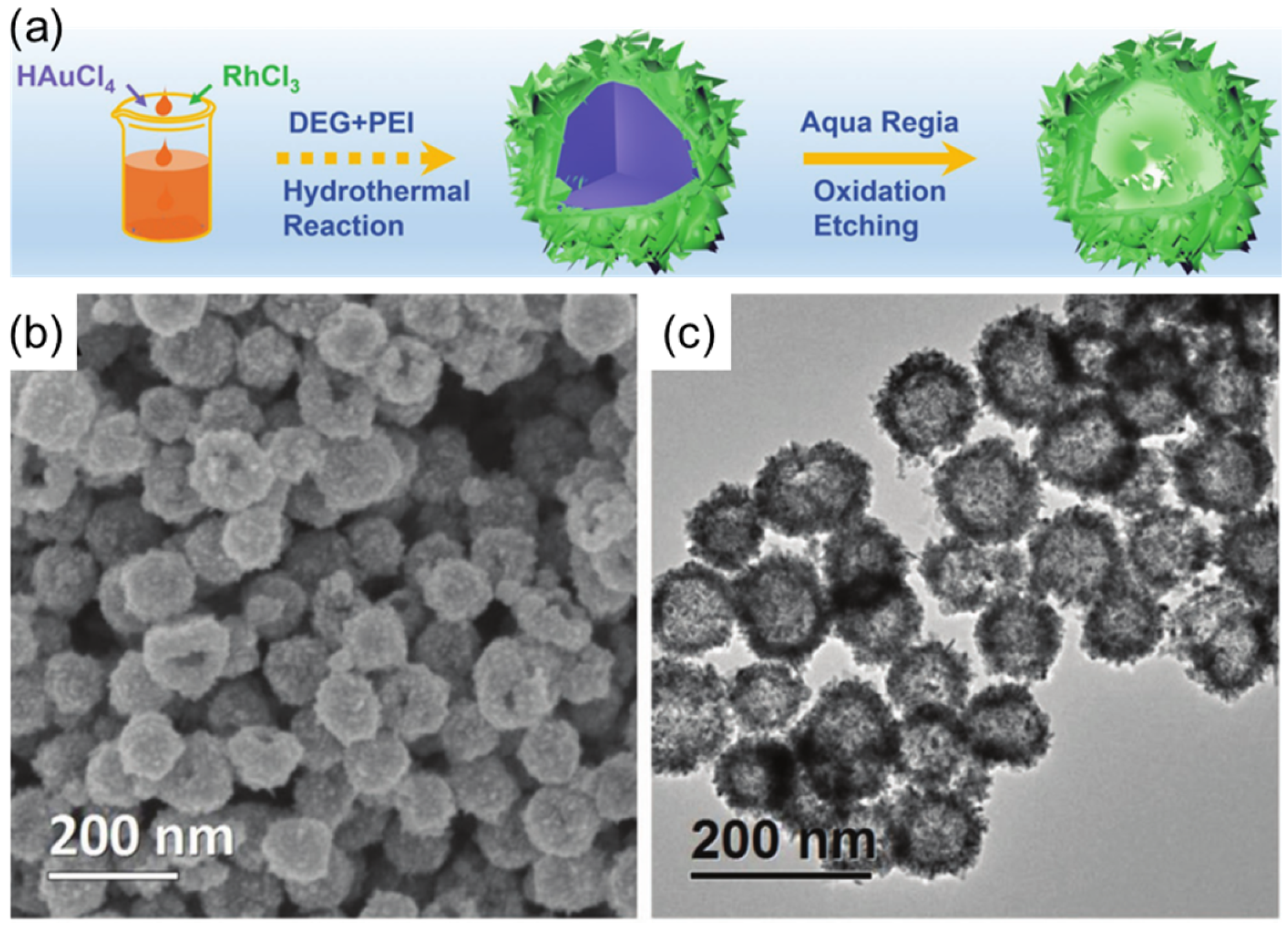 - Kang, Y.Q.; Xue, Q.; Zhao, Y.; Li, X.F.; Jin, P.J.; Chen, Y. Selective etching induced synthesis of hollow Rh nanospheres electrocatalyst for alcohol oxidation reactions. Small 2018, 14, 1801239. [Google Scholar] [CrossRef] [PubMed]