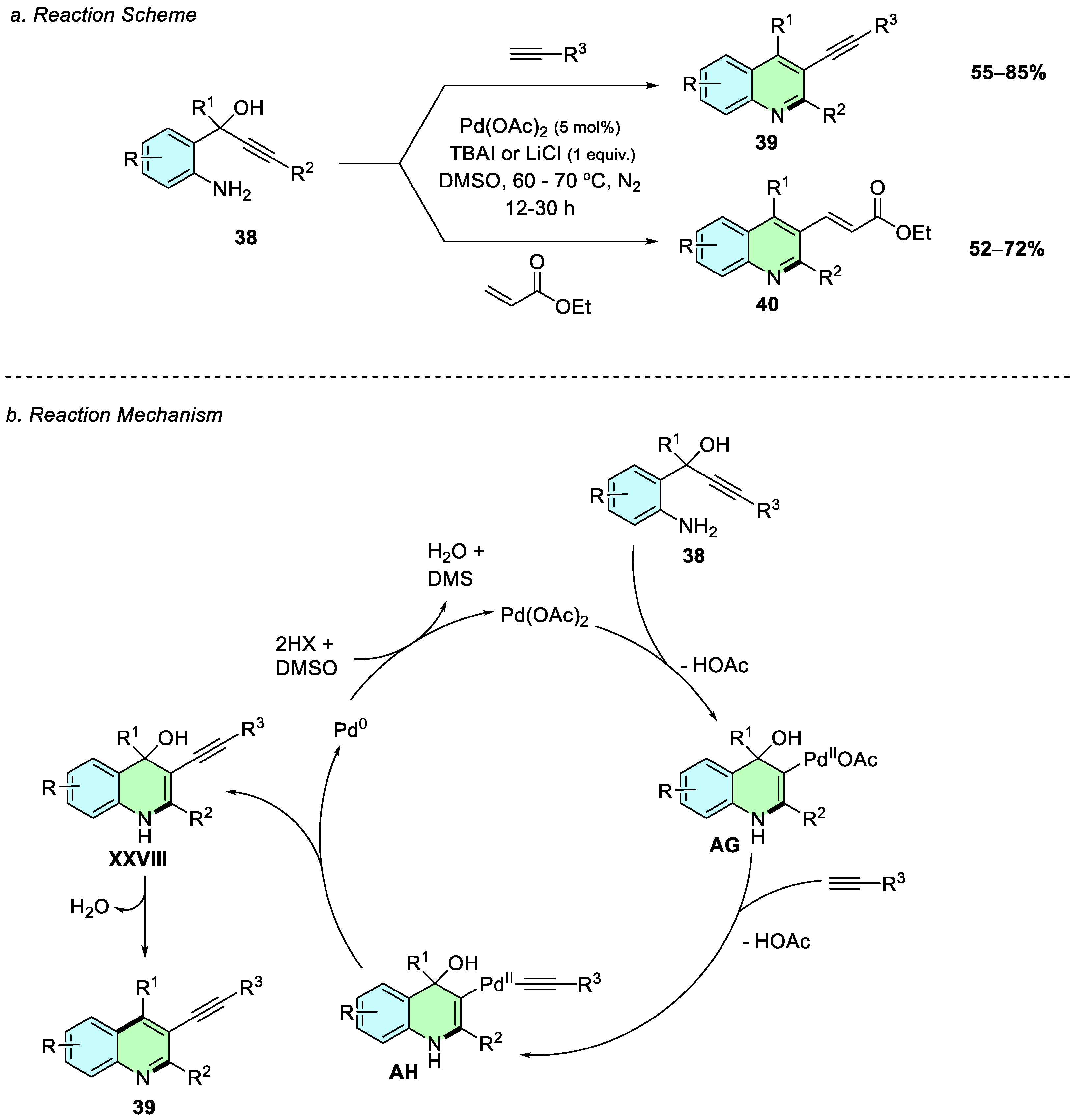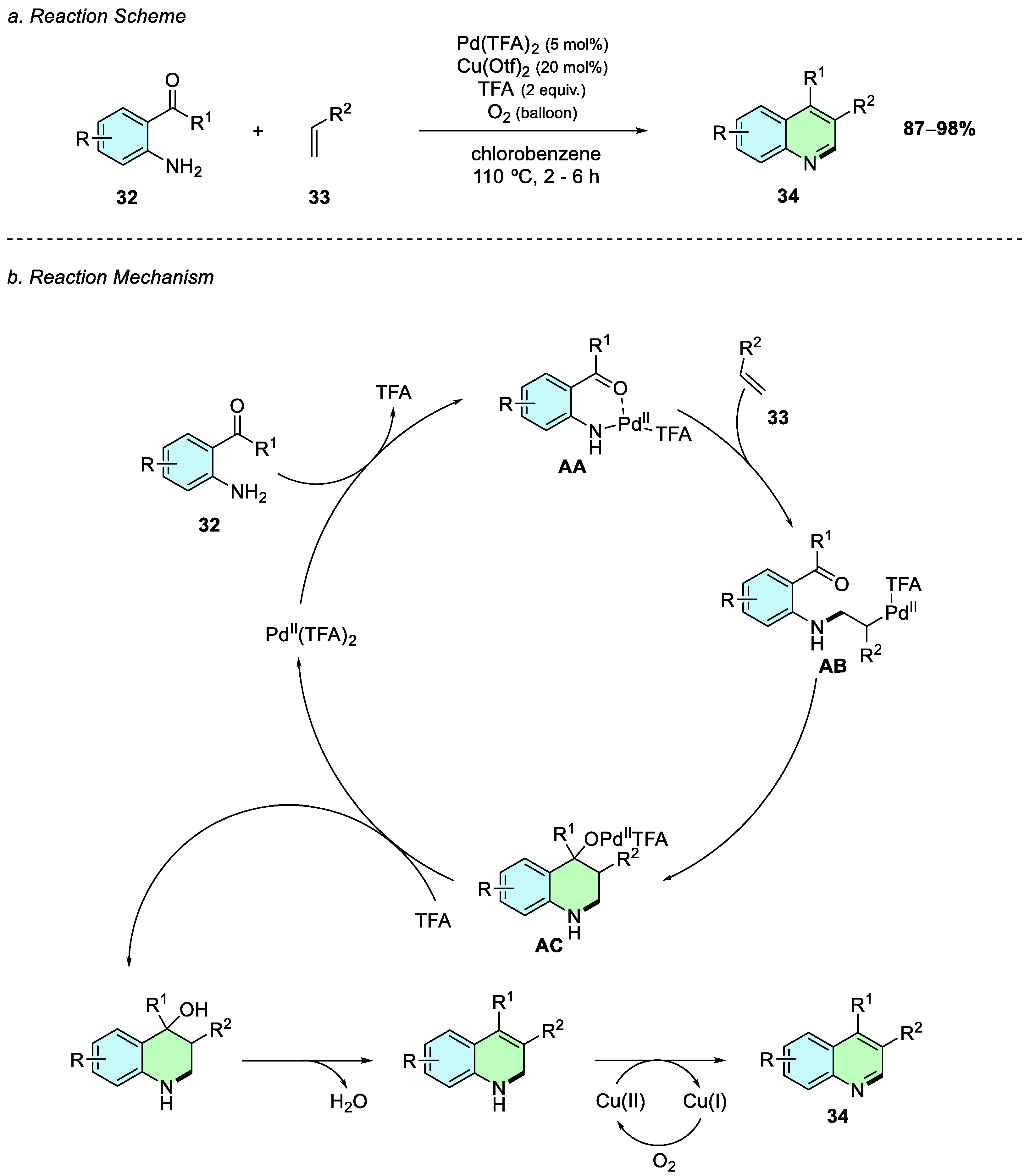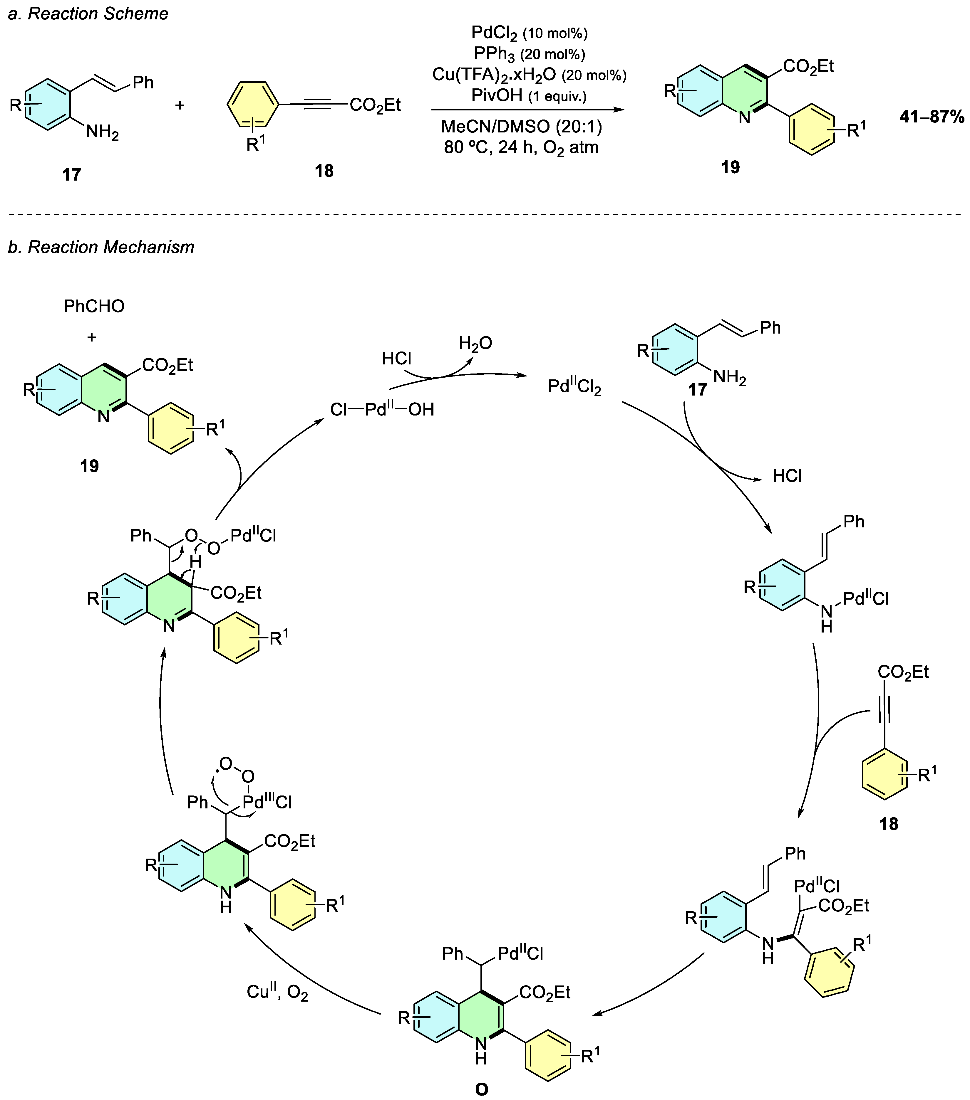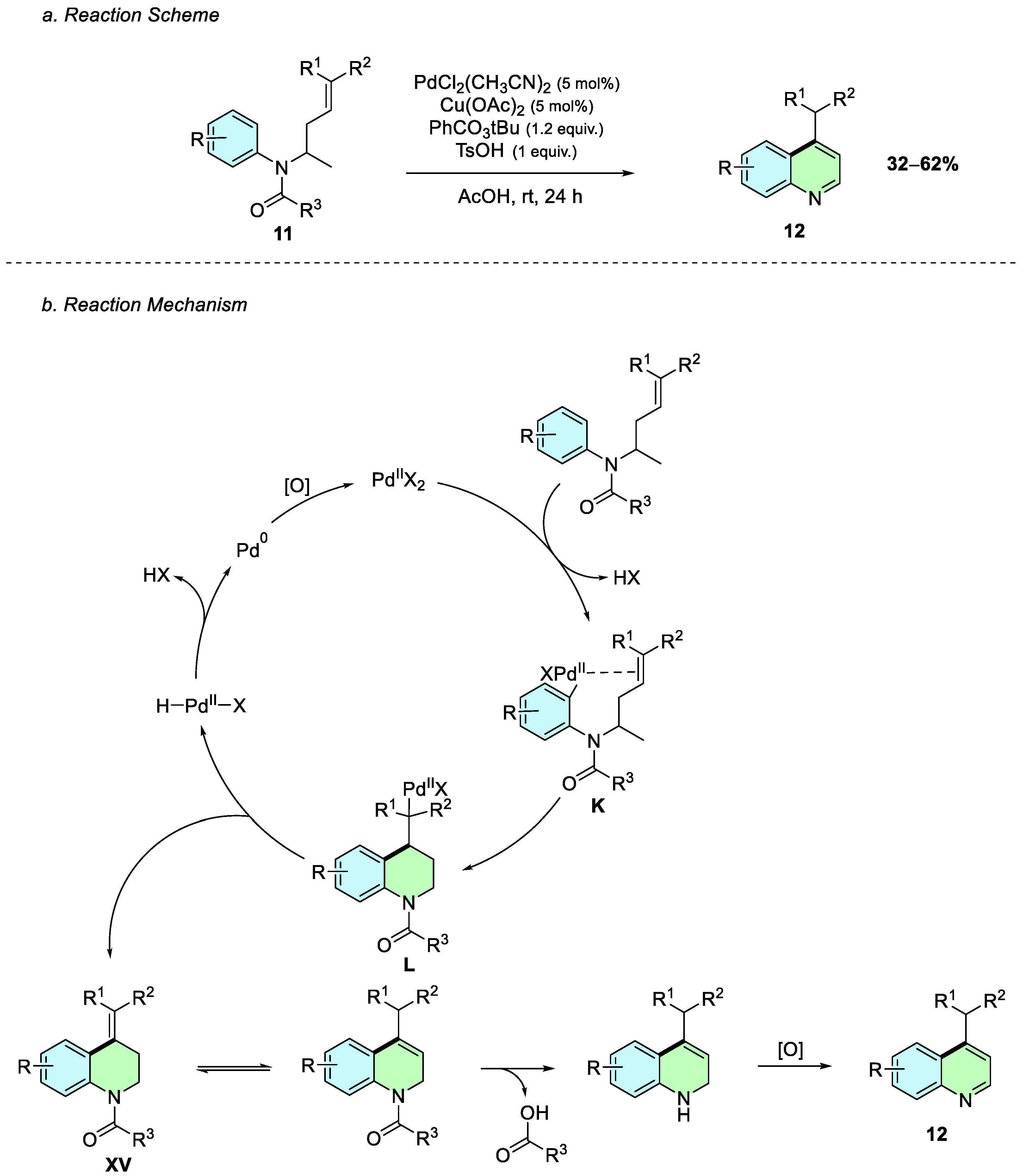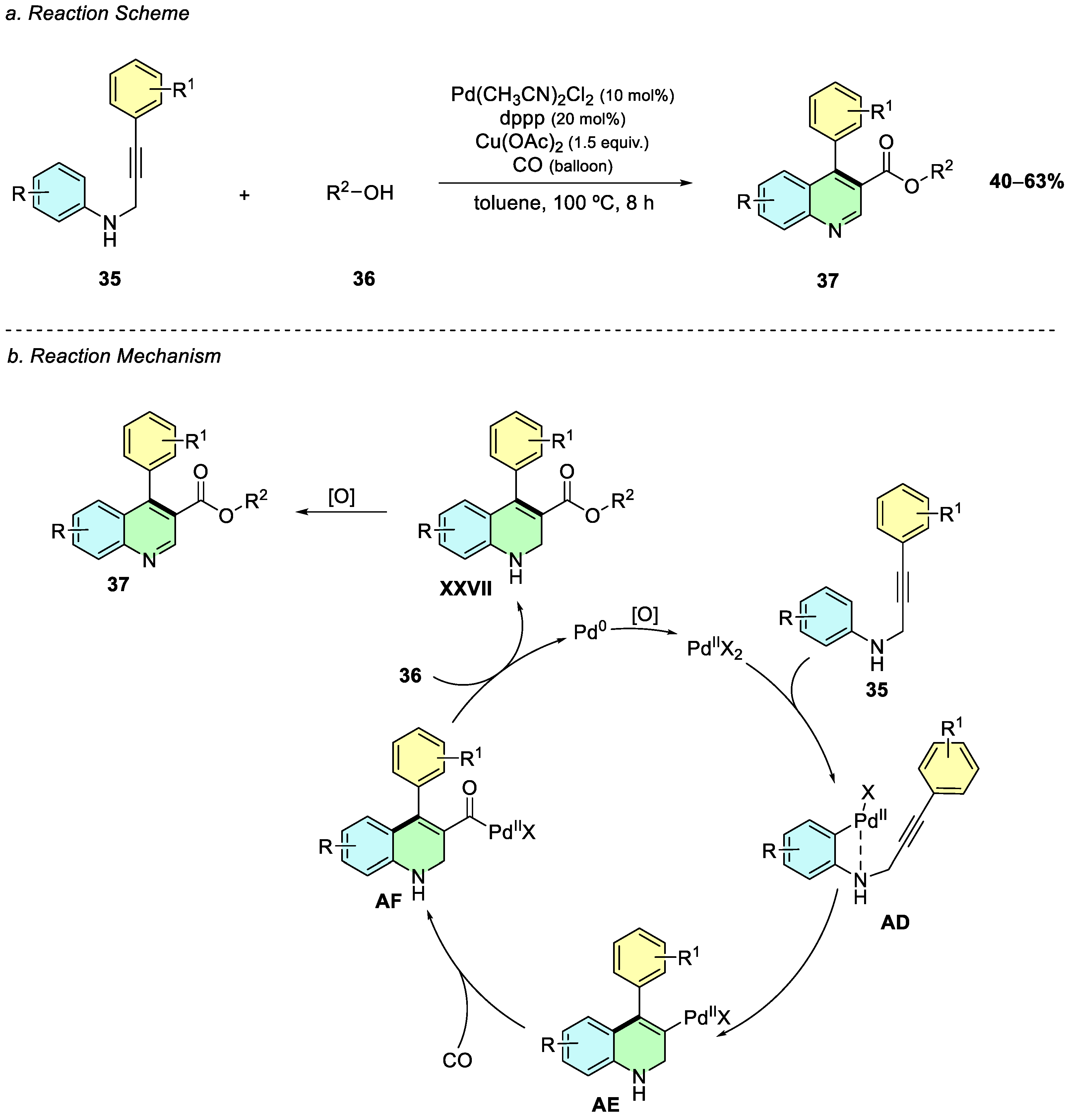 In 2017, Xu et al. reported a palladium-catalyzed oxidative cyclization of anilines