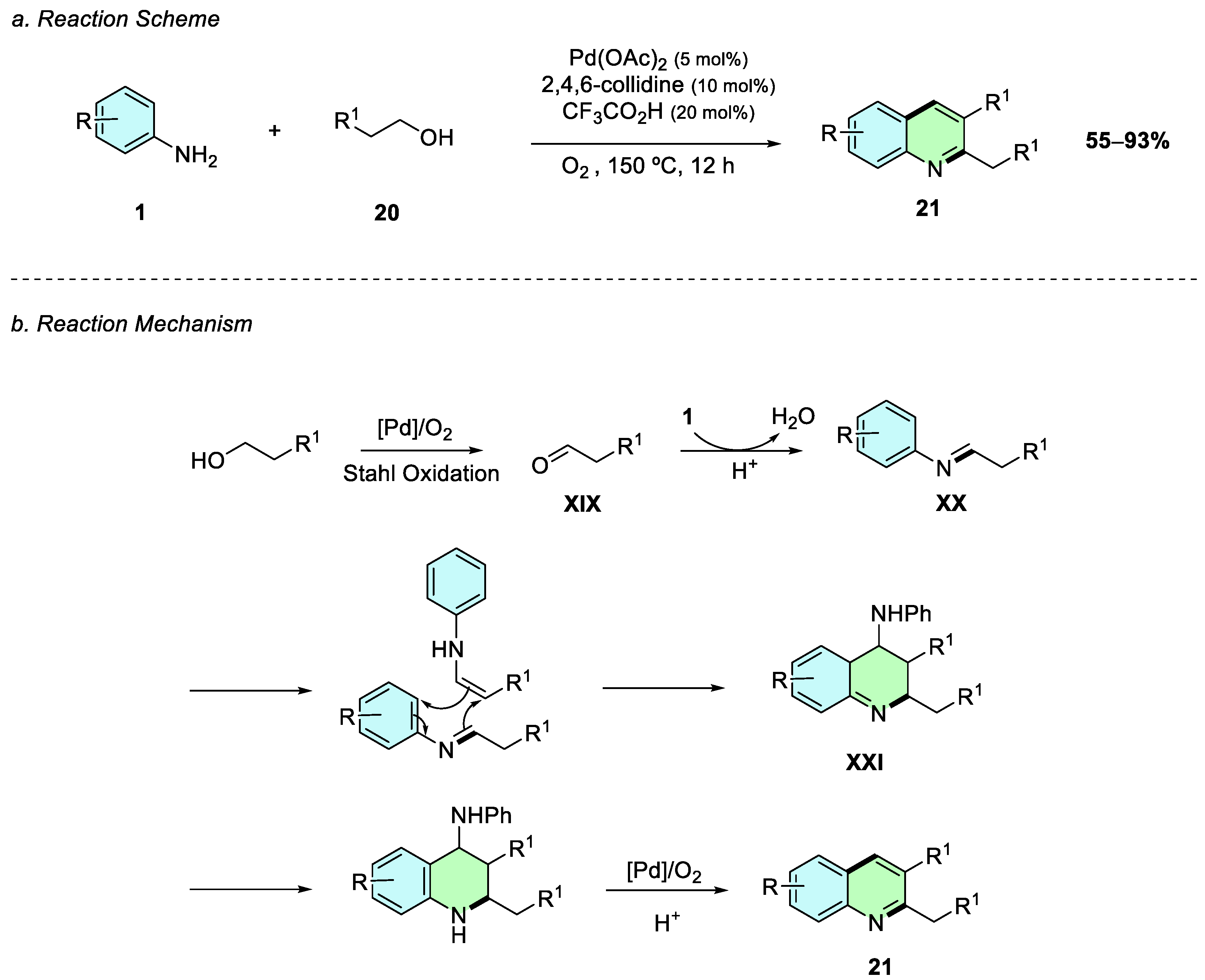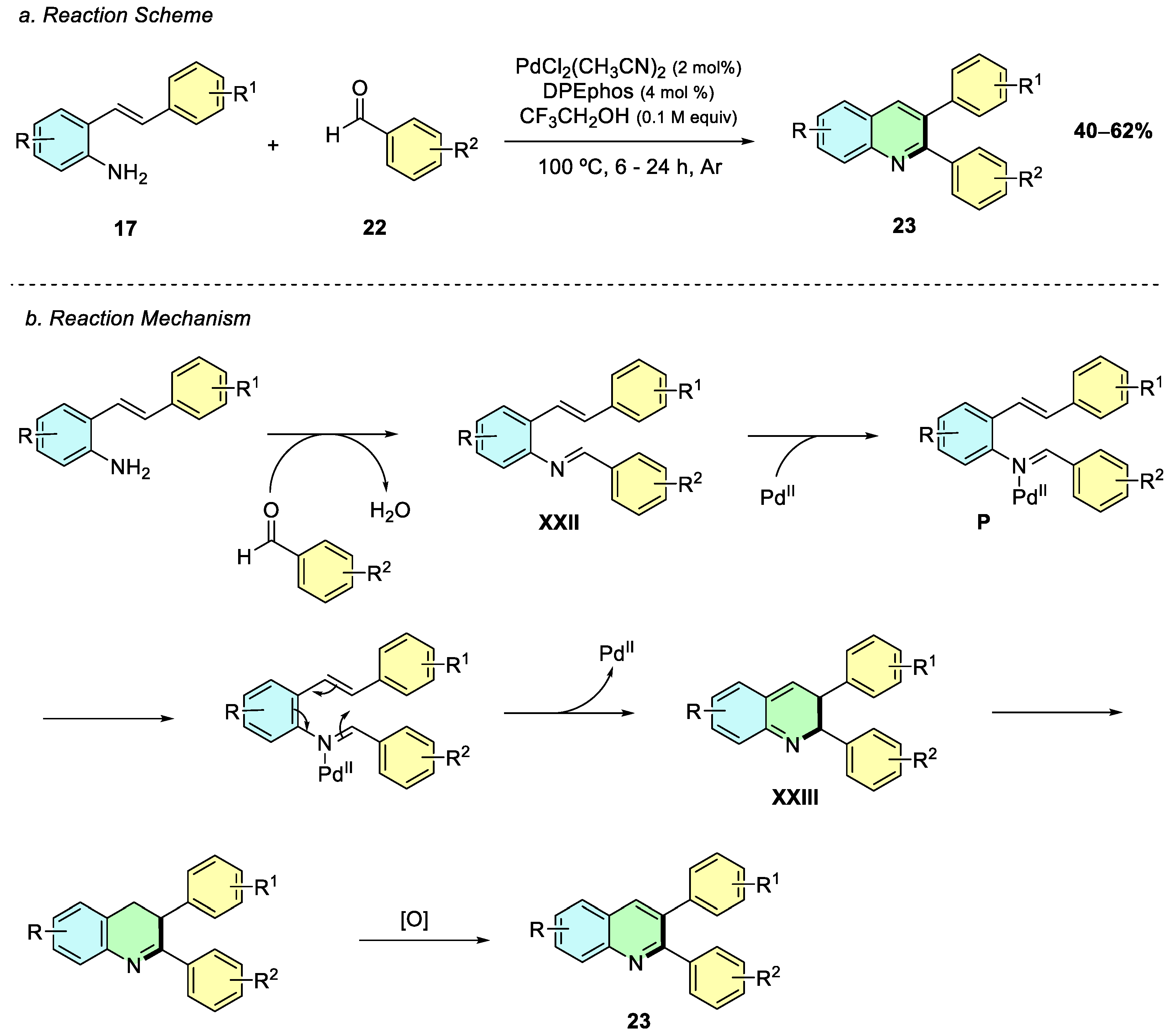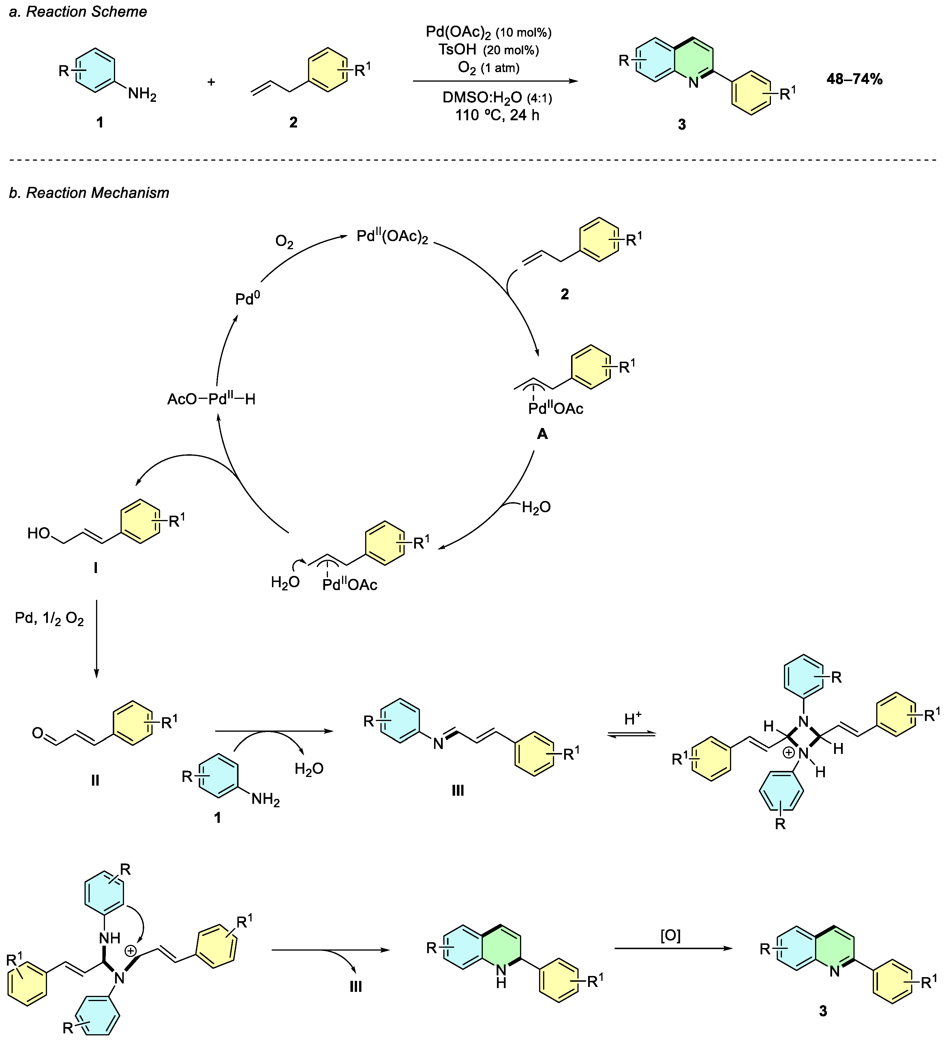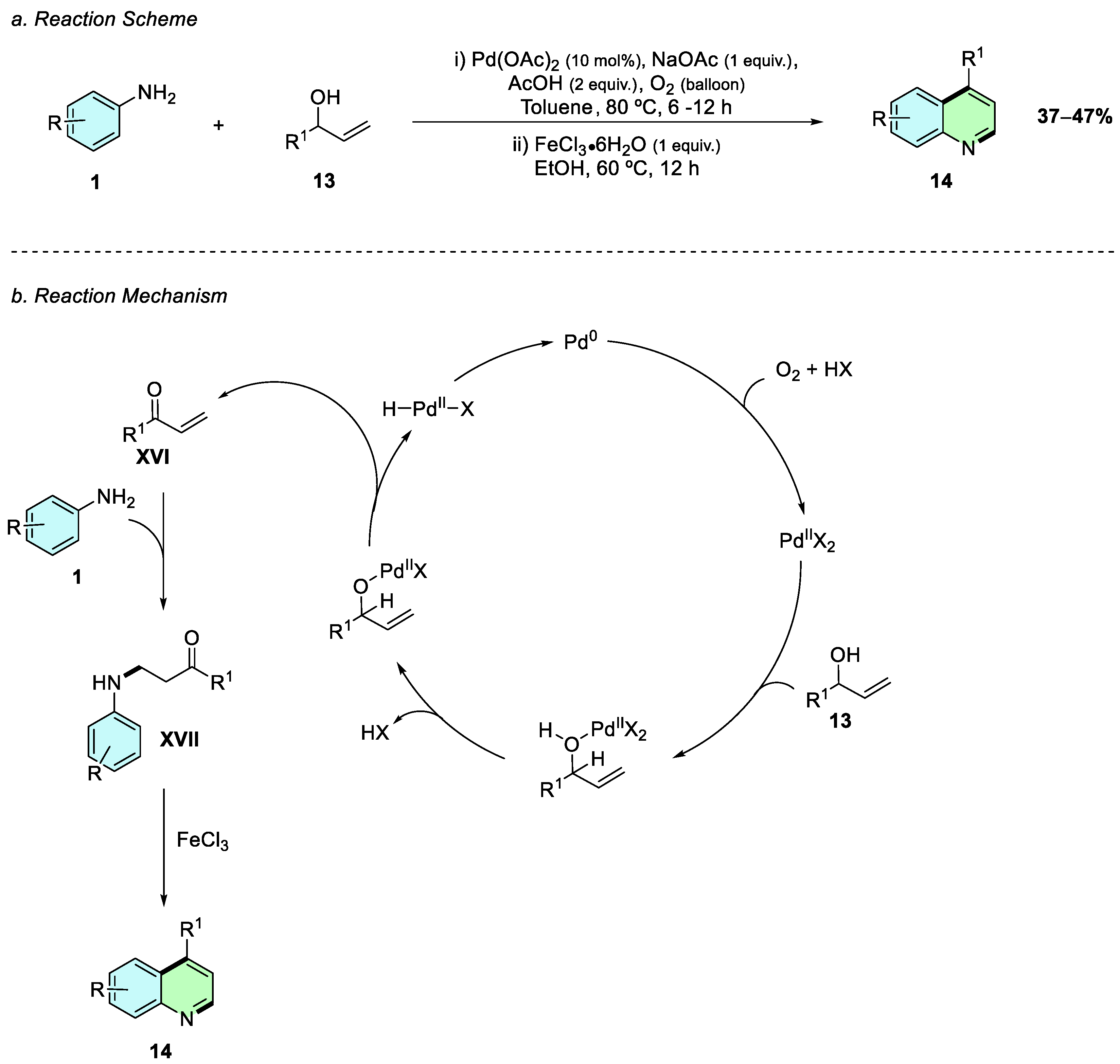 In 2017, Xu et al. reported a palladium-catalyzed oxidative cyclization of anilines