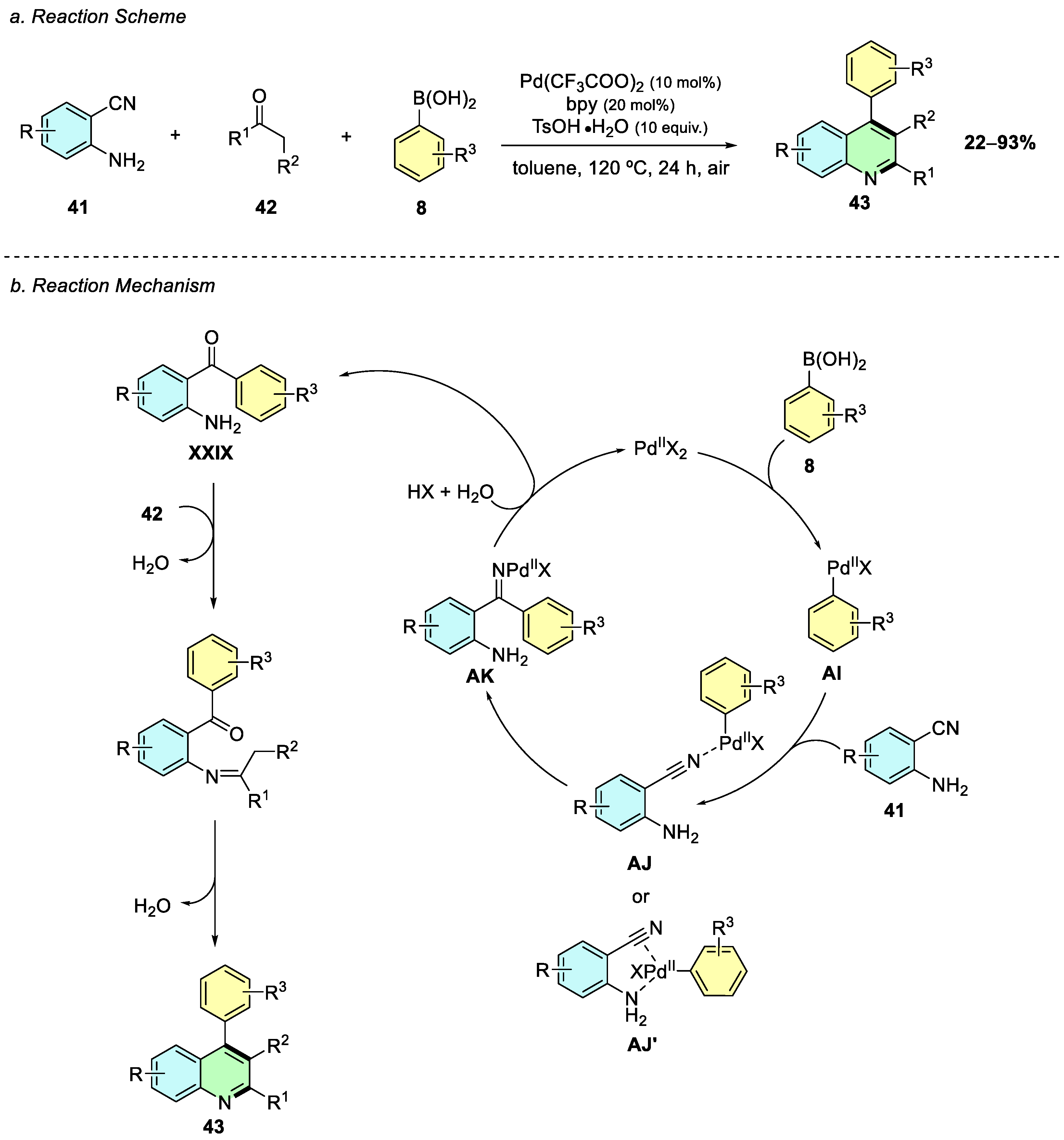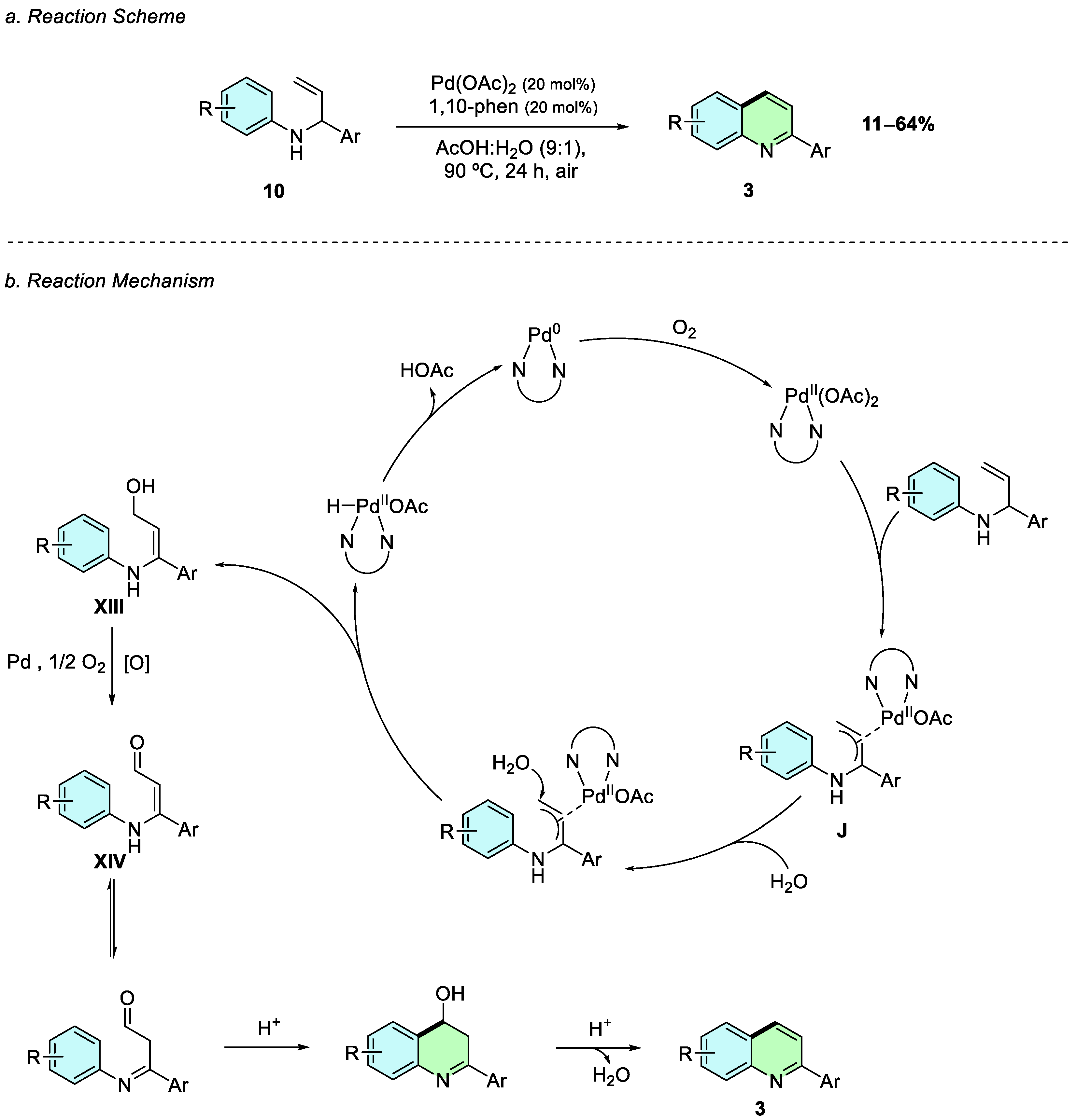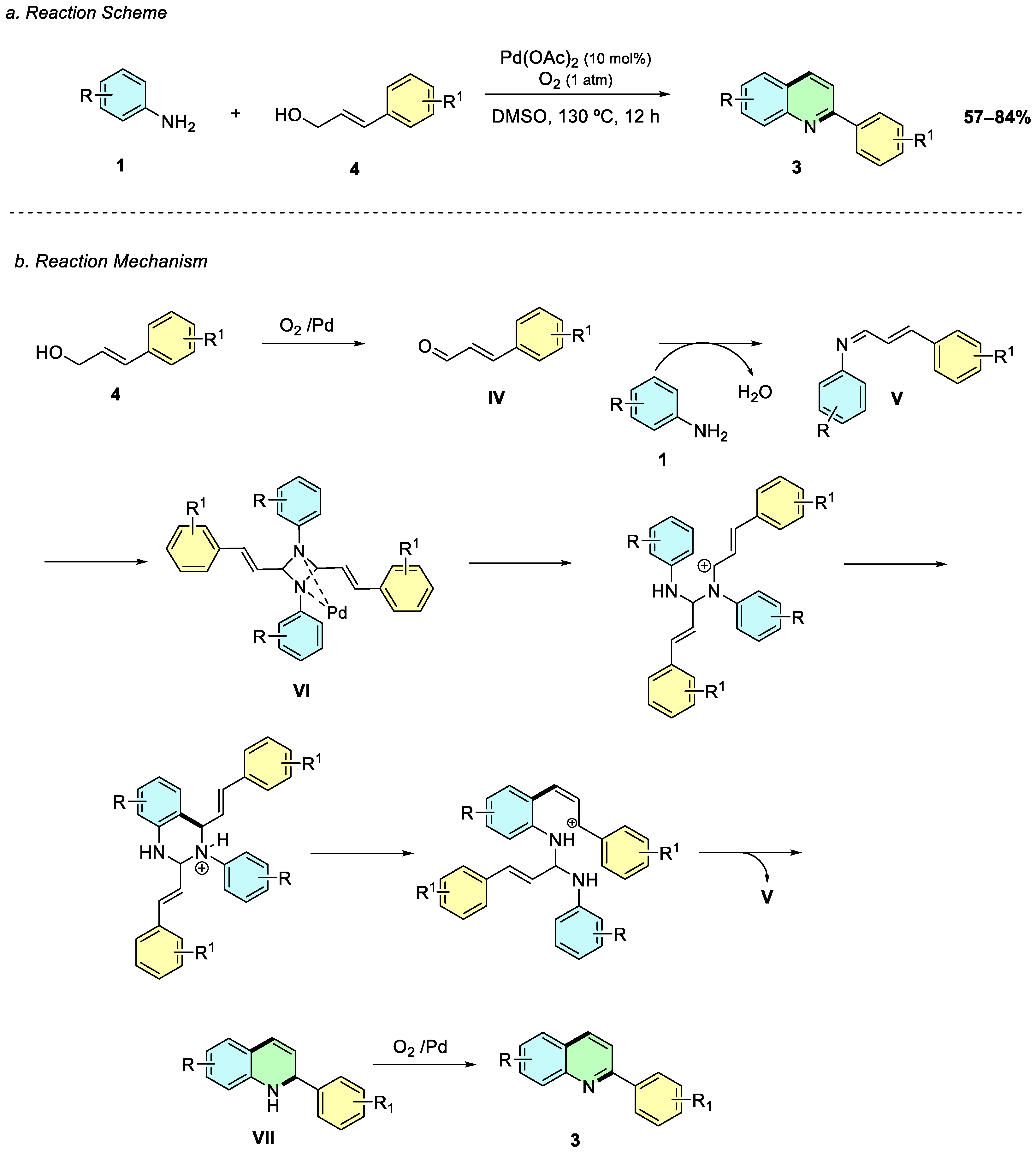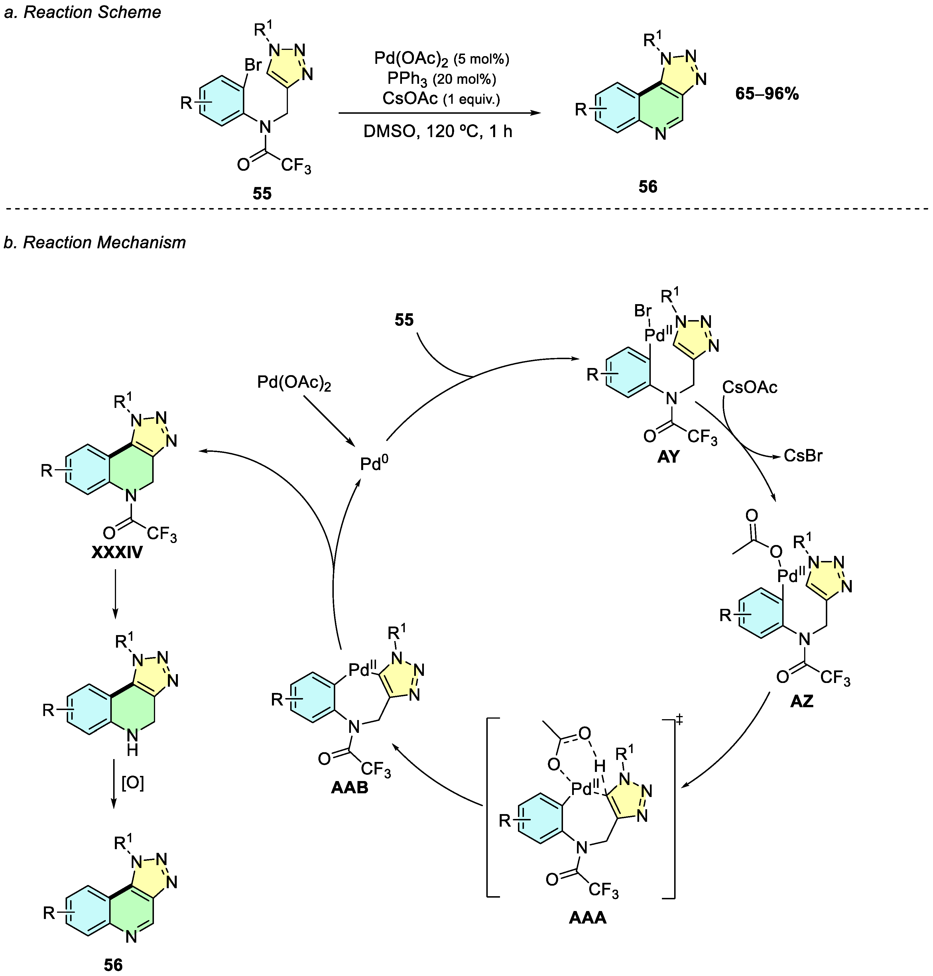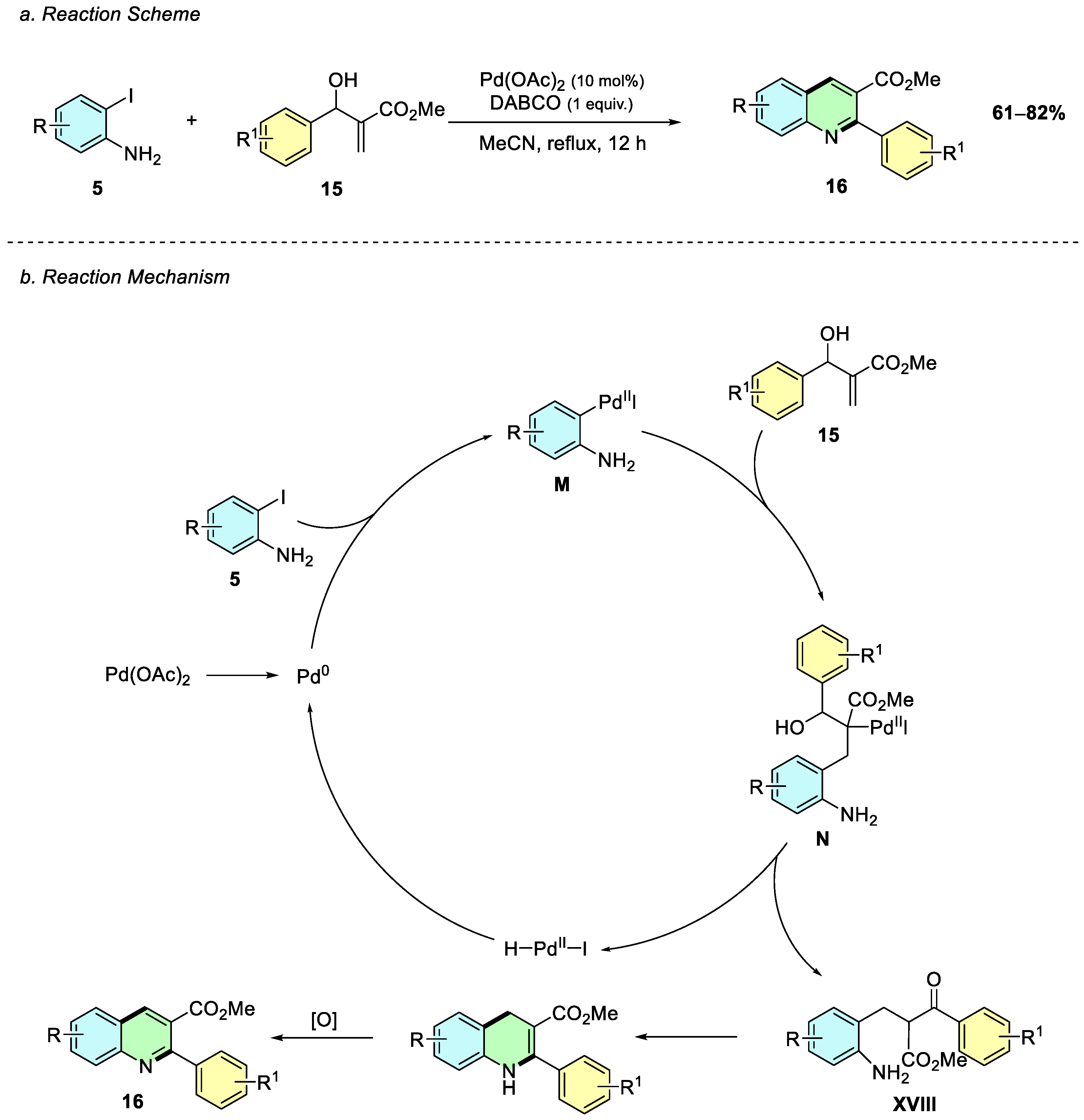 In 2017, Xu et al. reported a palladium-catalyzed oxidative cyclization of anilines