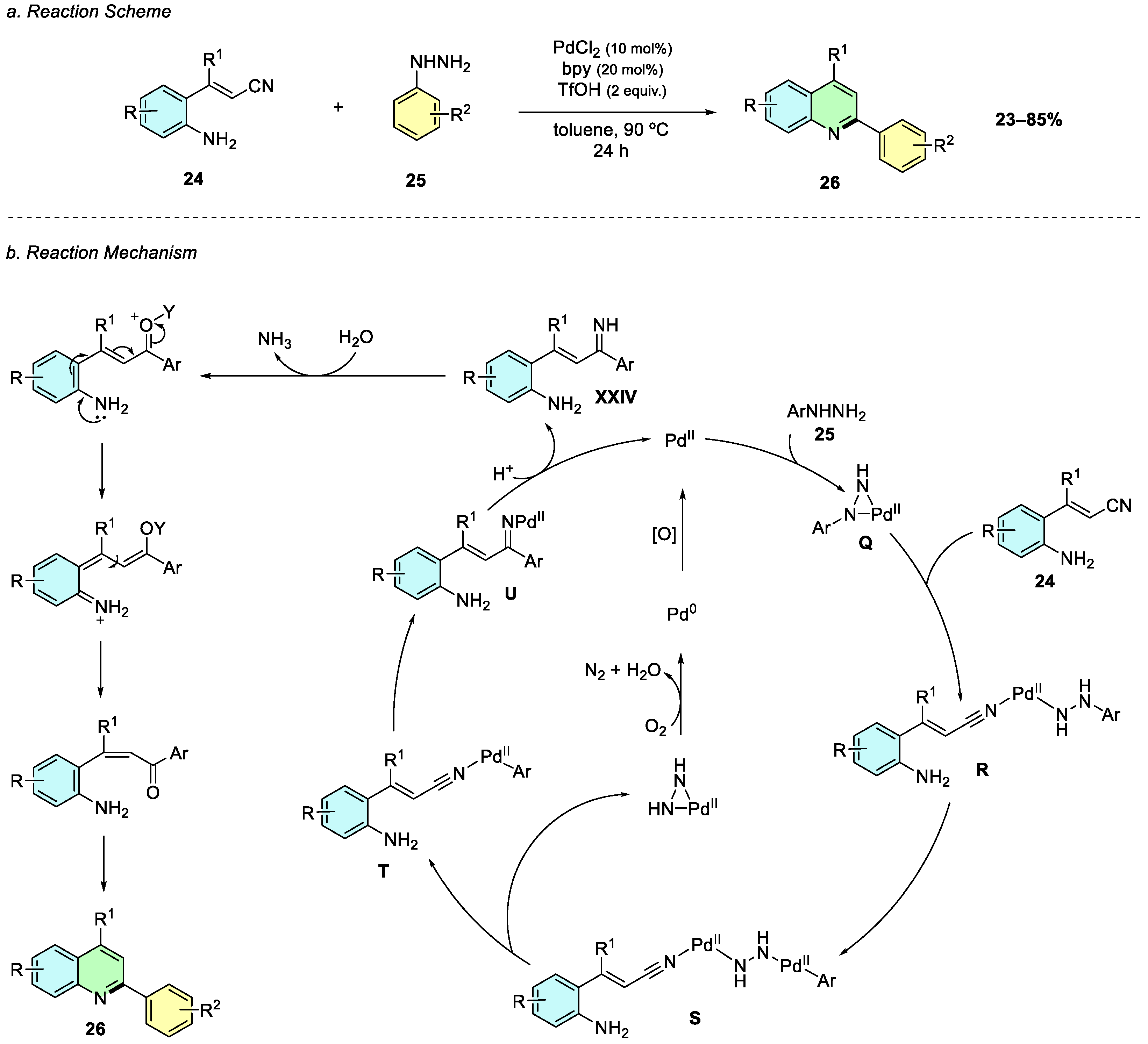 In 2019, Xu et al. reported a palladium-catalyzed tandem reaction between 2-aminostyryl nitriles