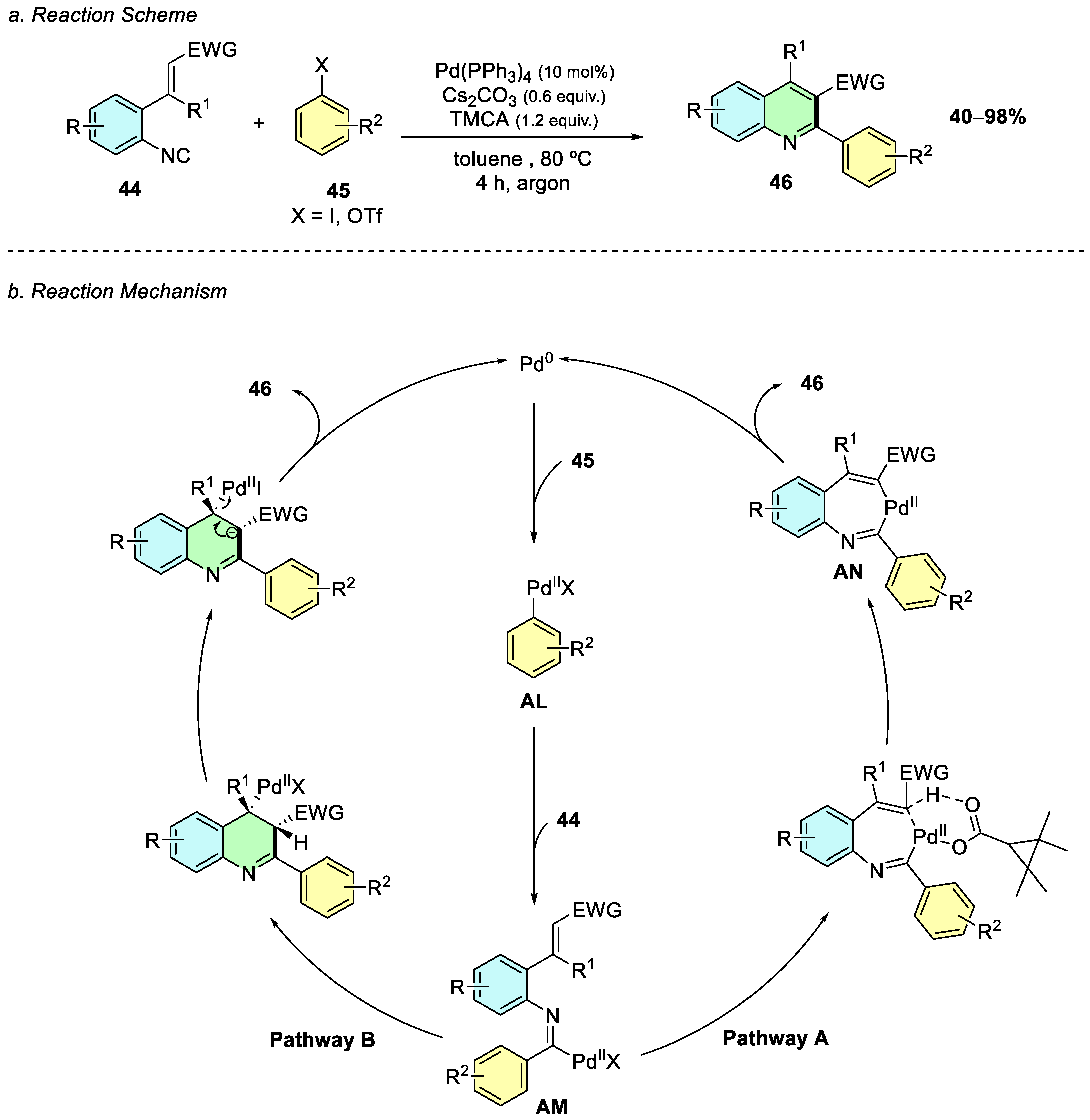 46 and regenerates the Pd(0) catalyst. Pathway B involves the same elementary steps as pathway A up to intermediate
