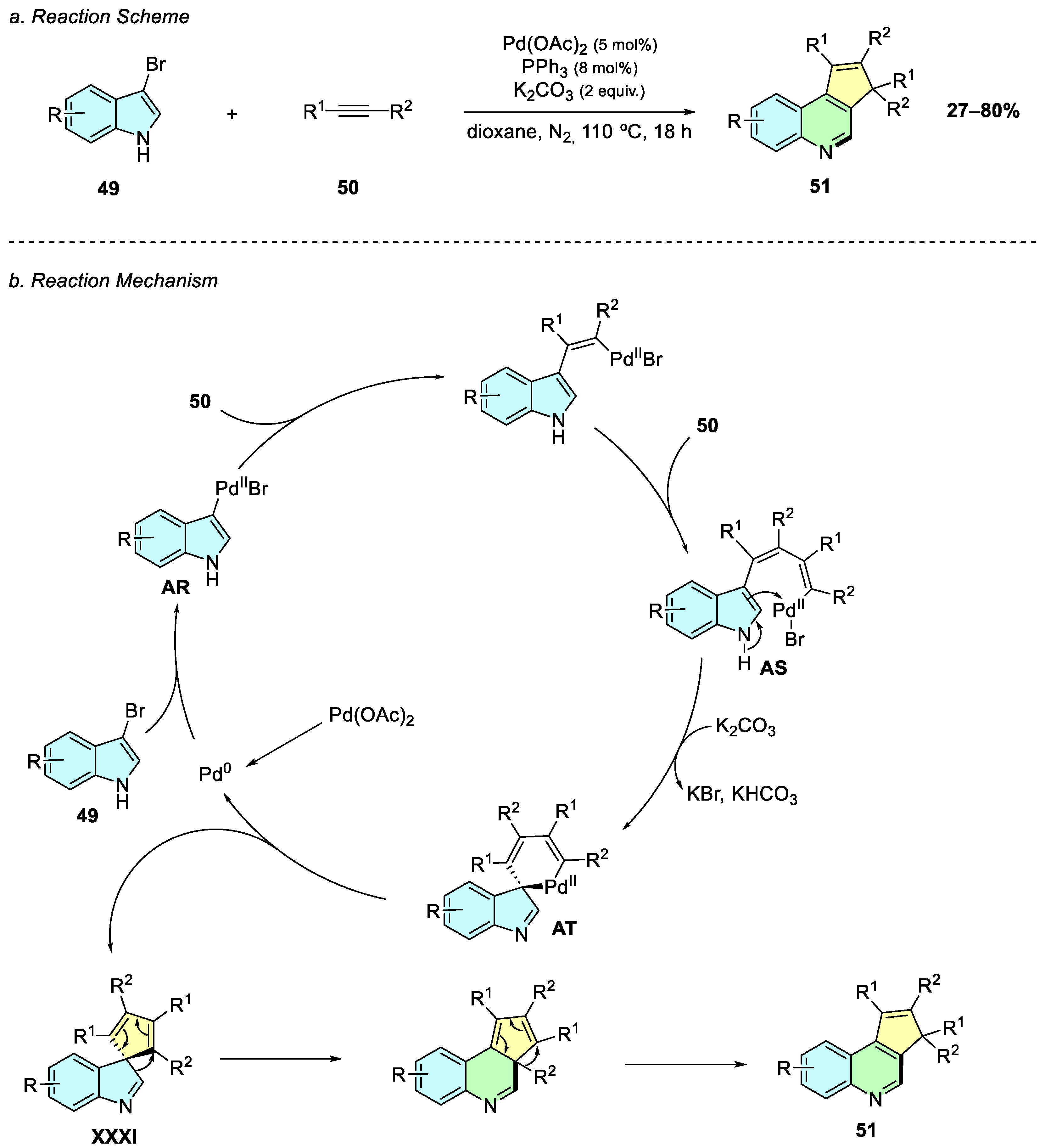 Scheme 22b). A double carbopalladation sequence is followed, affording intermediate
