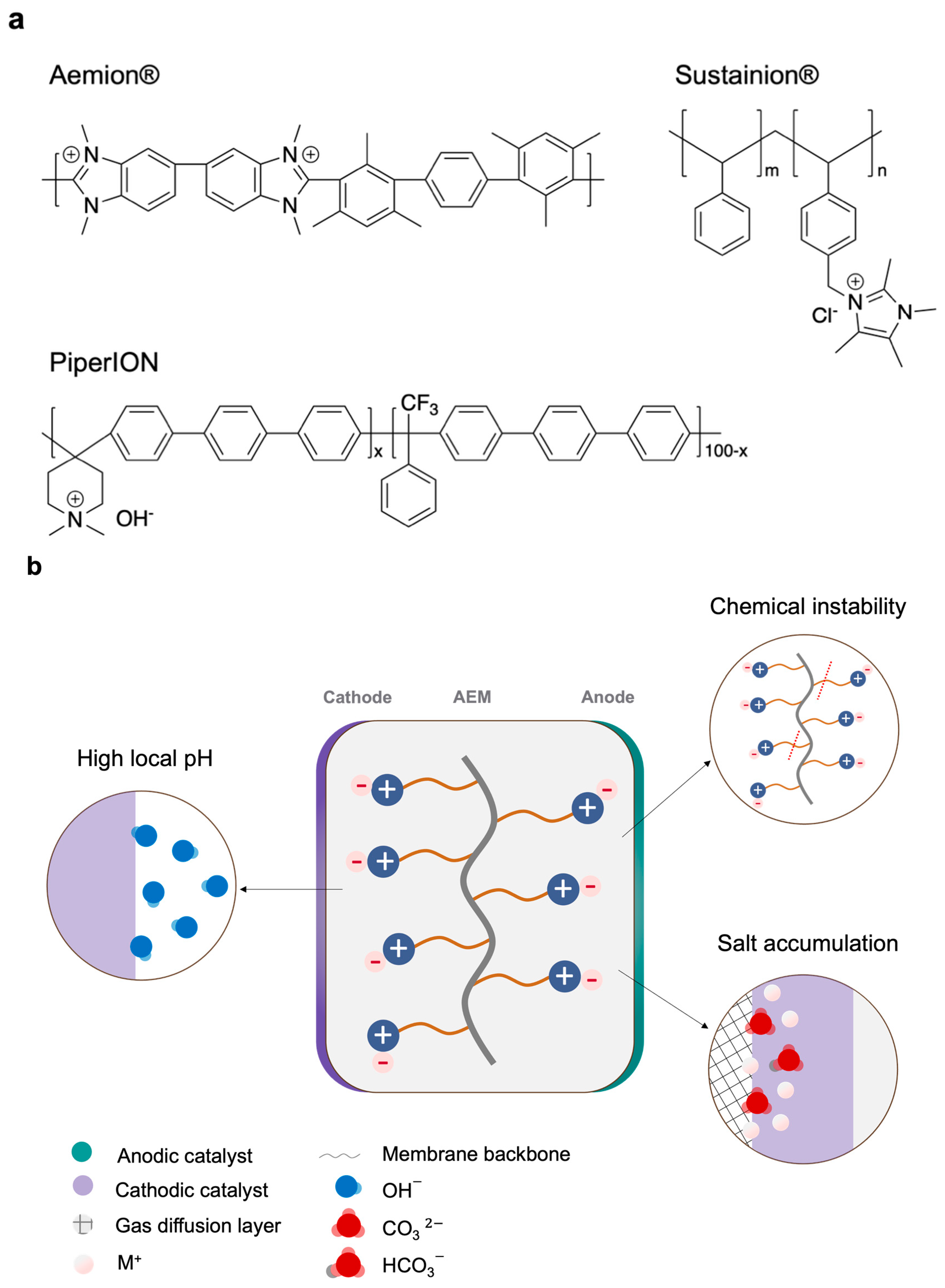 - Zhao, Y.; Hua, H.; Wei, S.; Luo, J. Screening Anion Exchange Membranes for CO2 Electrolysis. ACS Appl. Mater. Interfaces 2025, 17, 56164–56174. [Google Scholar] [CrossRef]