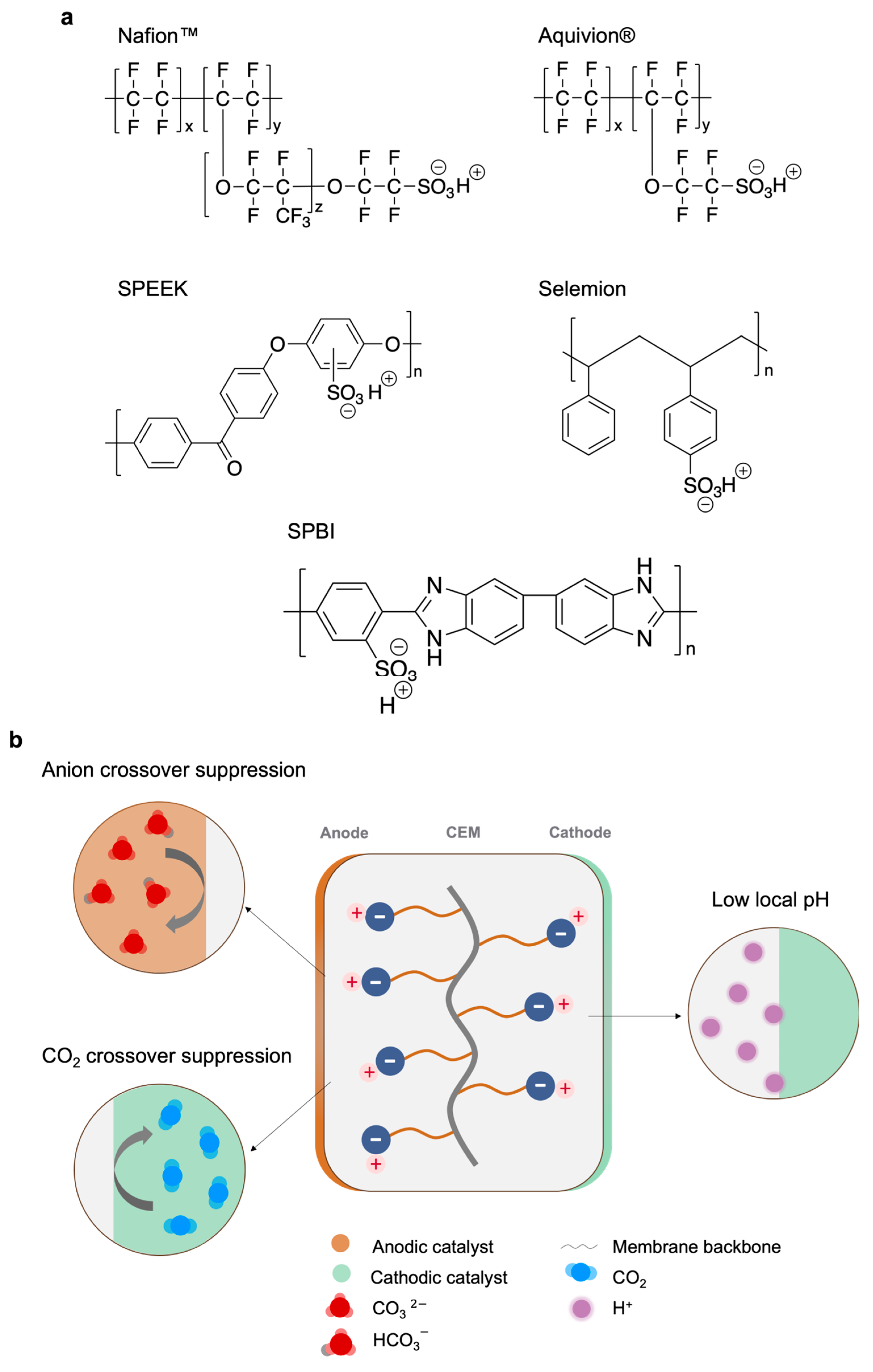 - Pham, T.H.; Lai, H.D.T.; Dang, N.K.; Nguyen, T.N.; Golovanova, V.; Dias, E.H.; Ho, A.; Xia, L.; Crane, J.; de Arquer, F.P.G.; et al. Ambipolar Ion Transport Membranes Enable Stable Noble-Metal-Free CO2 Electrolysis in Neutral Media. Adv. Energy Mater. 2025, 15, e04286. [Google Scholar] [CrossRef]