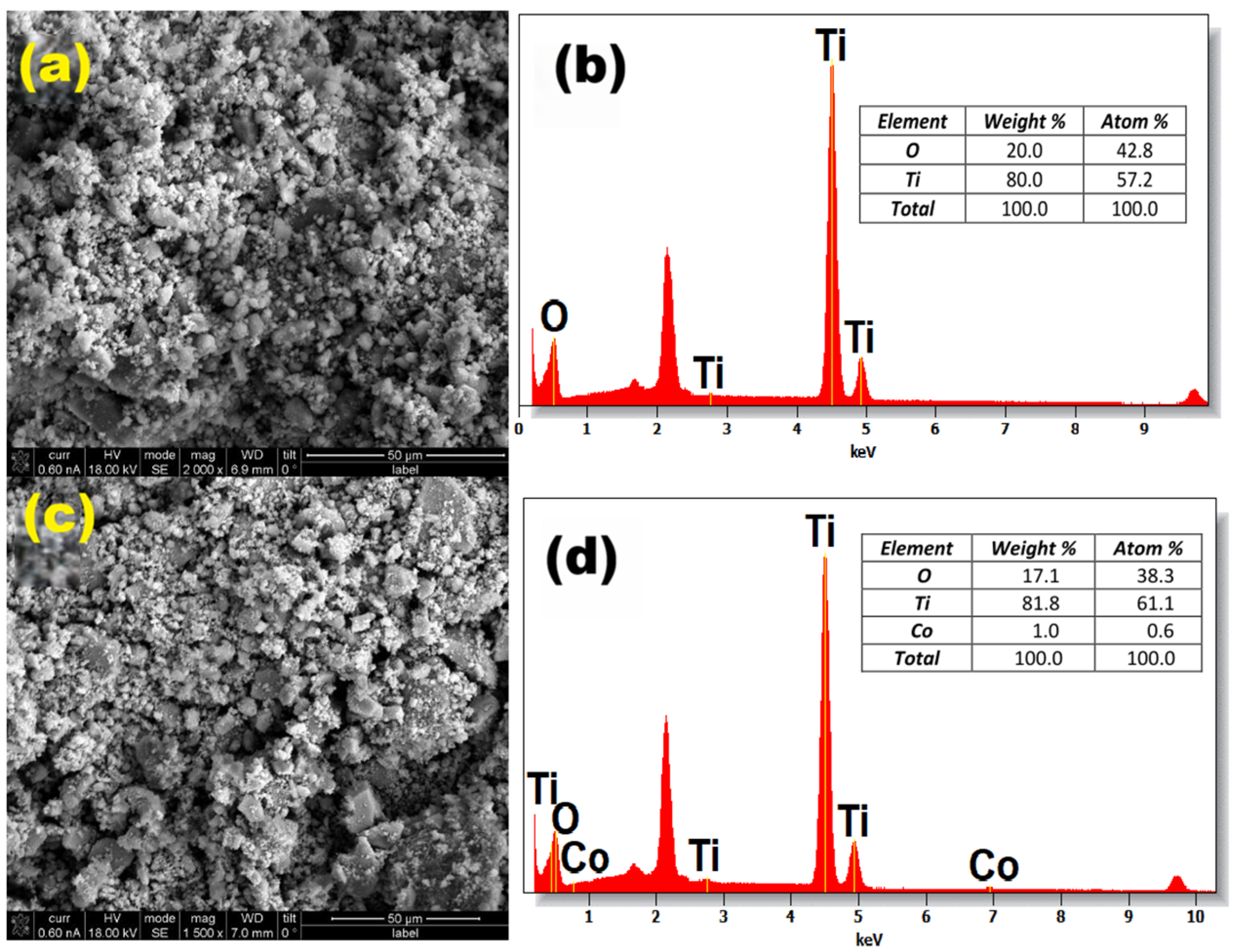 - Jiang, P.; Xiang, W.; Kuang, J.; Liu, W.; Cao, W. Effect of Cobalt Doping on the Electronic, Optical and Photocatalytic Properties of TiO2. Solid State Sci. 2015, 46, 27–32. [Google Scholar] [CrossRef]