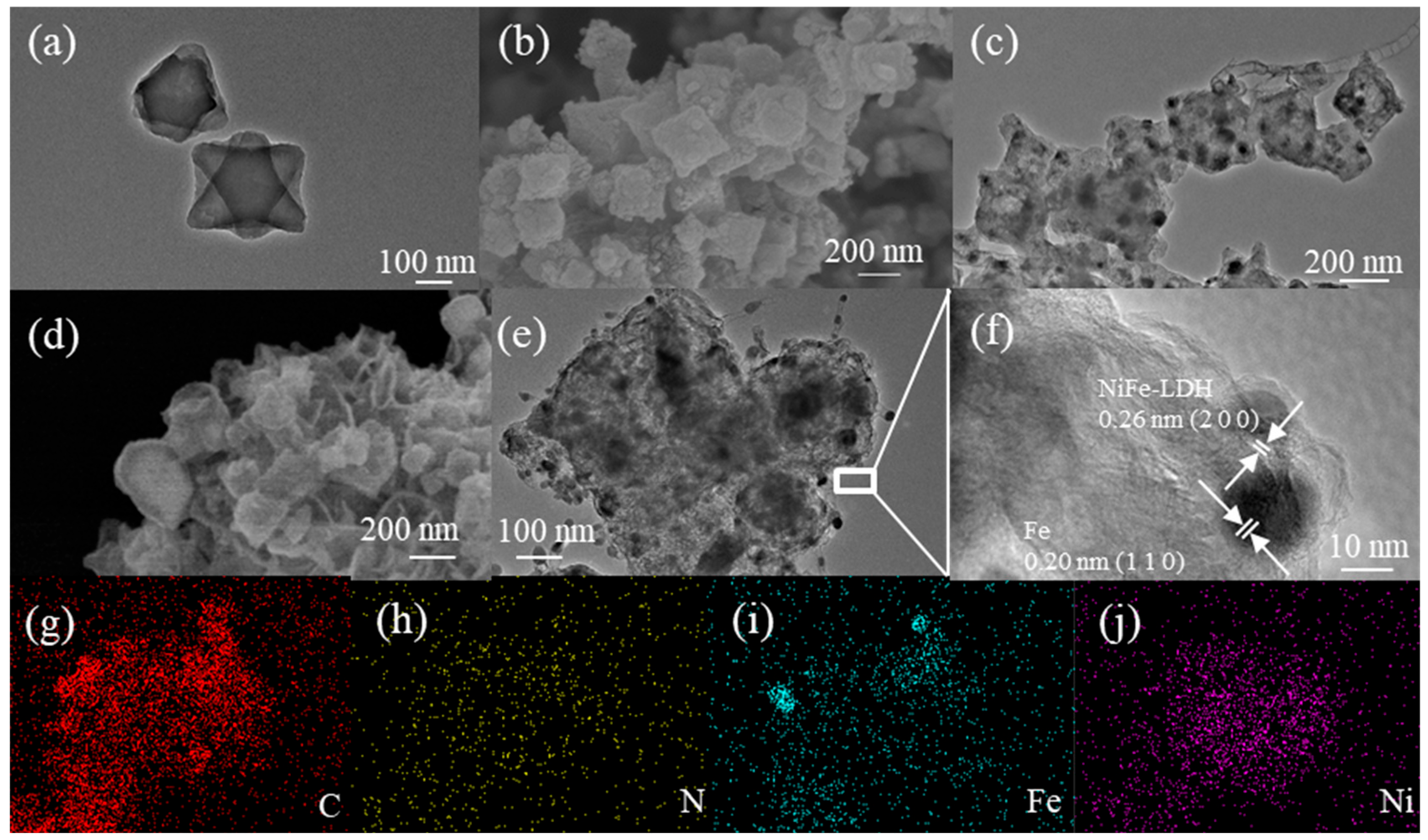3.4. Synthesis of Fe-NC@NiFe-LDH