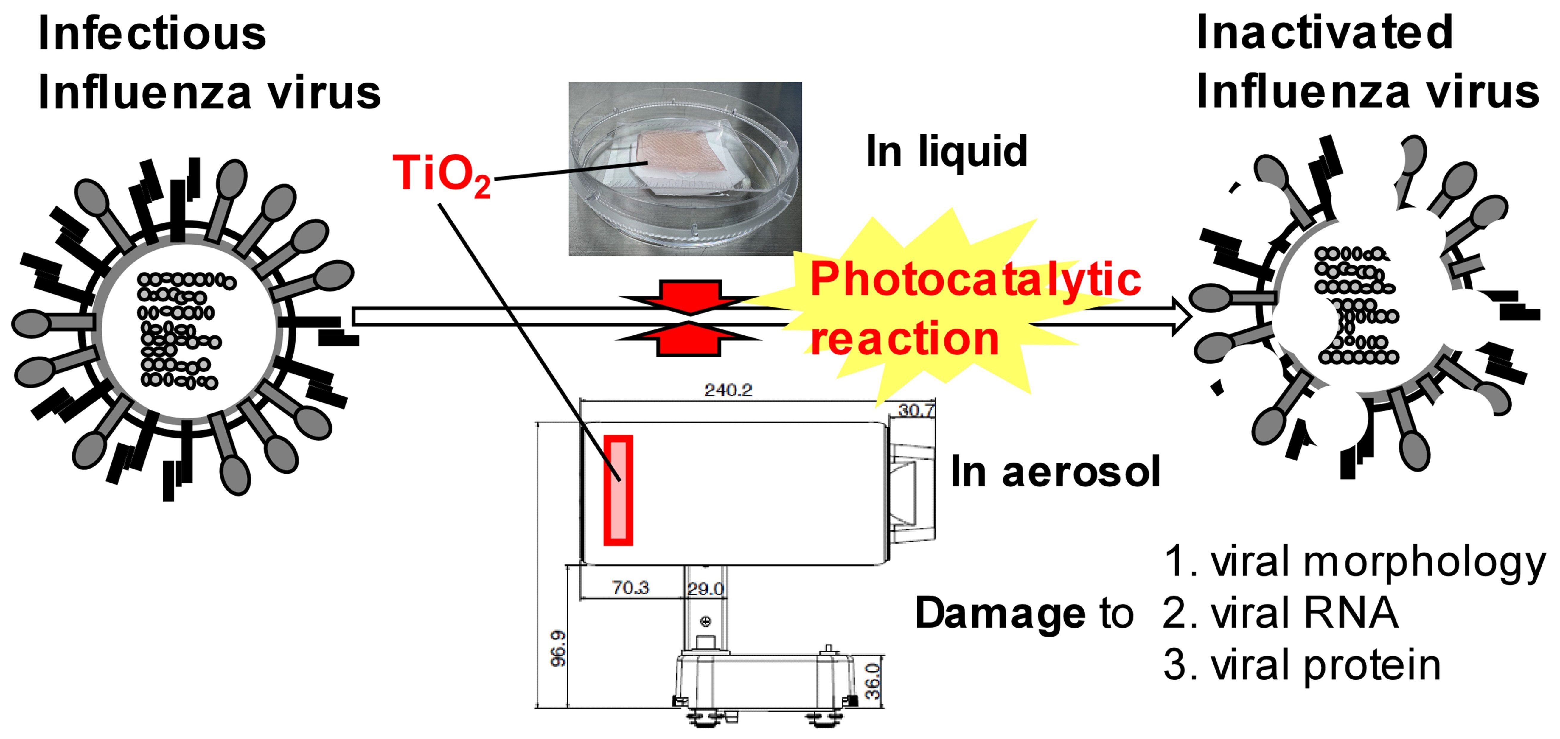 TiO2 Photocatalyst Inactivates Highly Pathogenic Avian Influenza Virus and H1N1 Seasonal Influenza Virus via Multi-Antiviral Effects