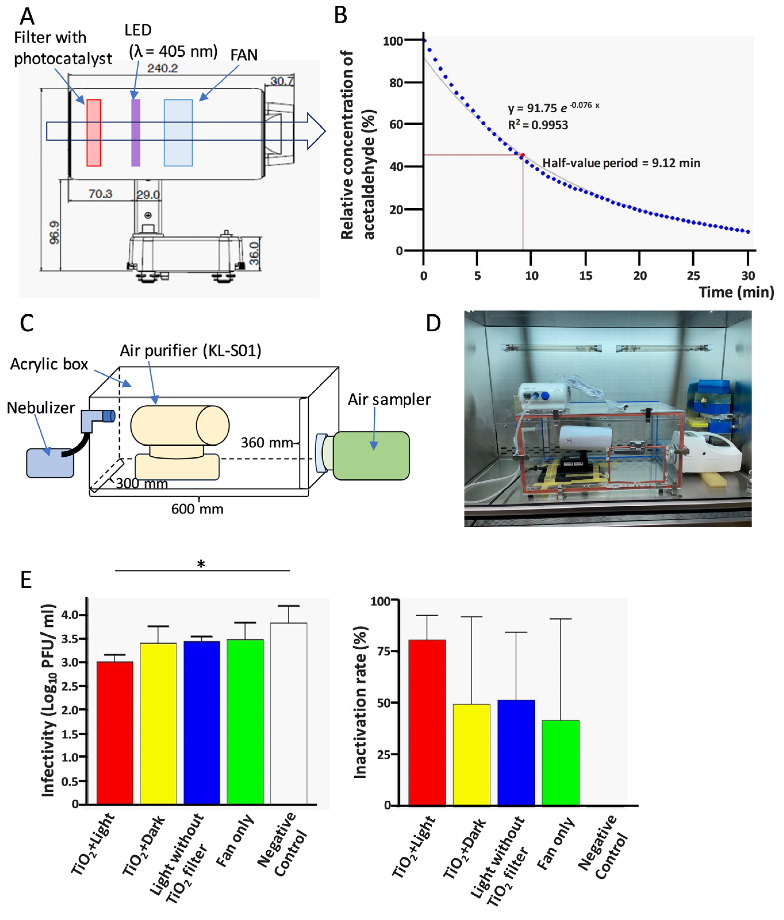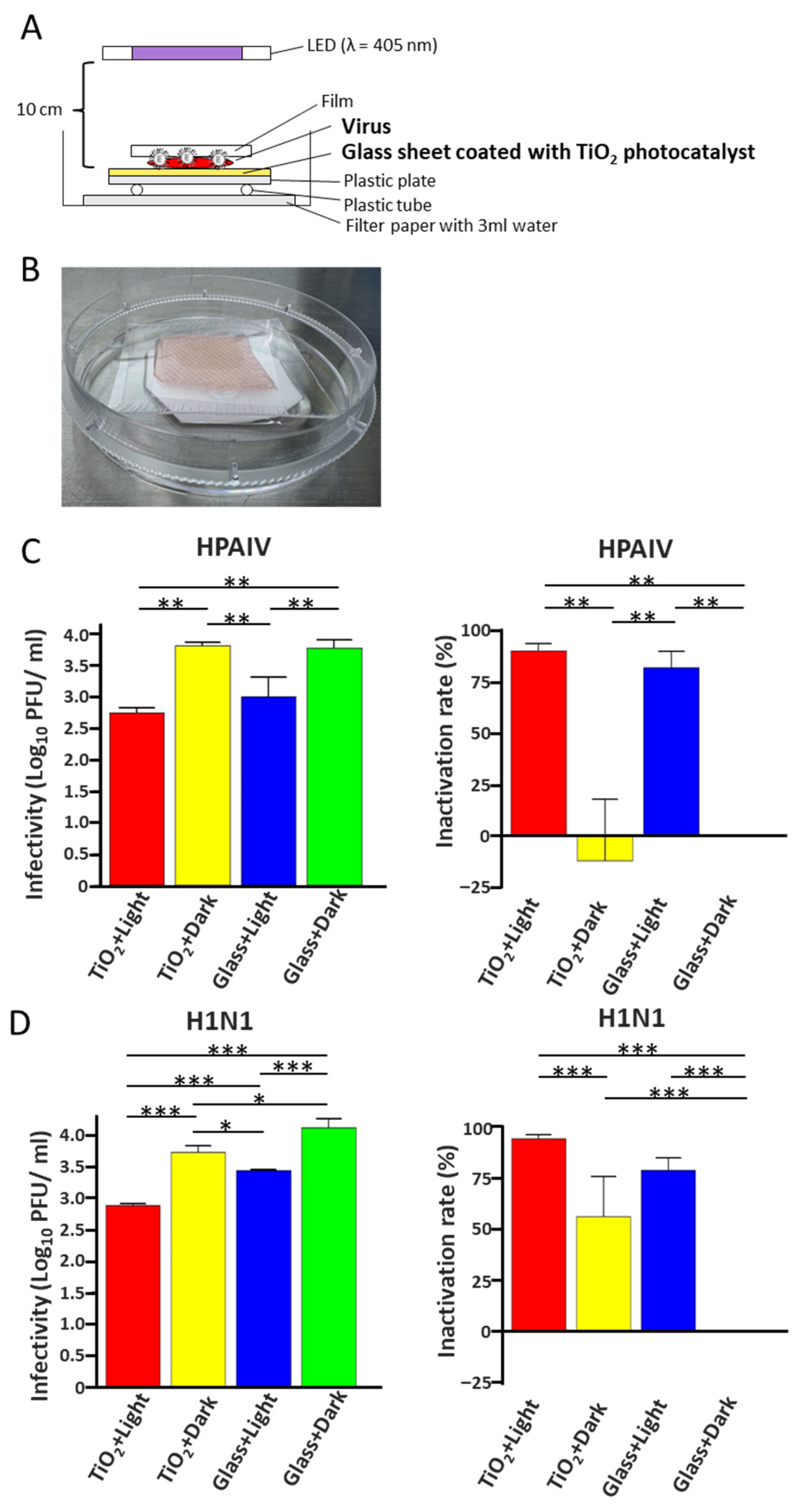 4.9. Inactivation of H1N1 Seasonal Influenza Virus in Aerosol by the LED-TiO2 Photocatalytic Reaction