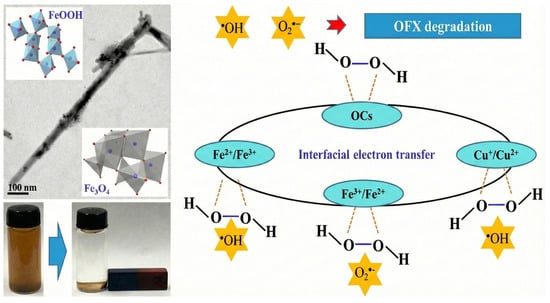 - Jin, H.; Tian, X.; Nie, Y.; Zhou, Z.; Yang, C.; Li, Y.; Lu, L. Oxygen Vacancy Promoted Heterogeneous Fenton-like Degradation of Ofloxacin at pH 3.2–9.0 by Cu Substituted Magnetic Fe3O4@FeOOH Nanocomposite. Environ. Sci. Technol. 2017, 51, 12699–12706. [Google Scholar] [CrossRef]