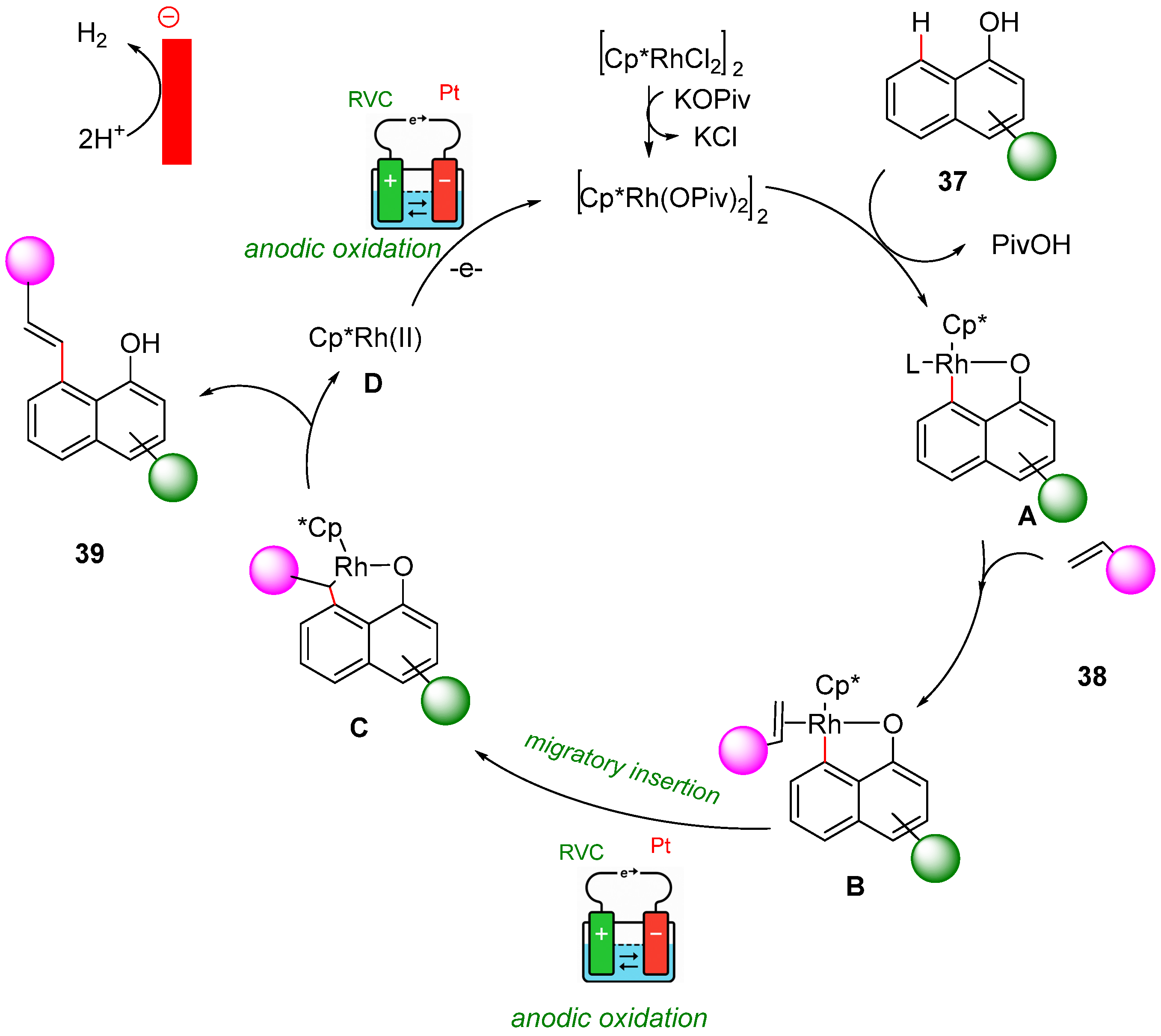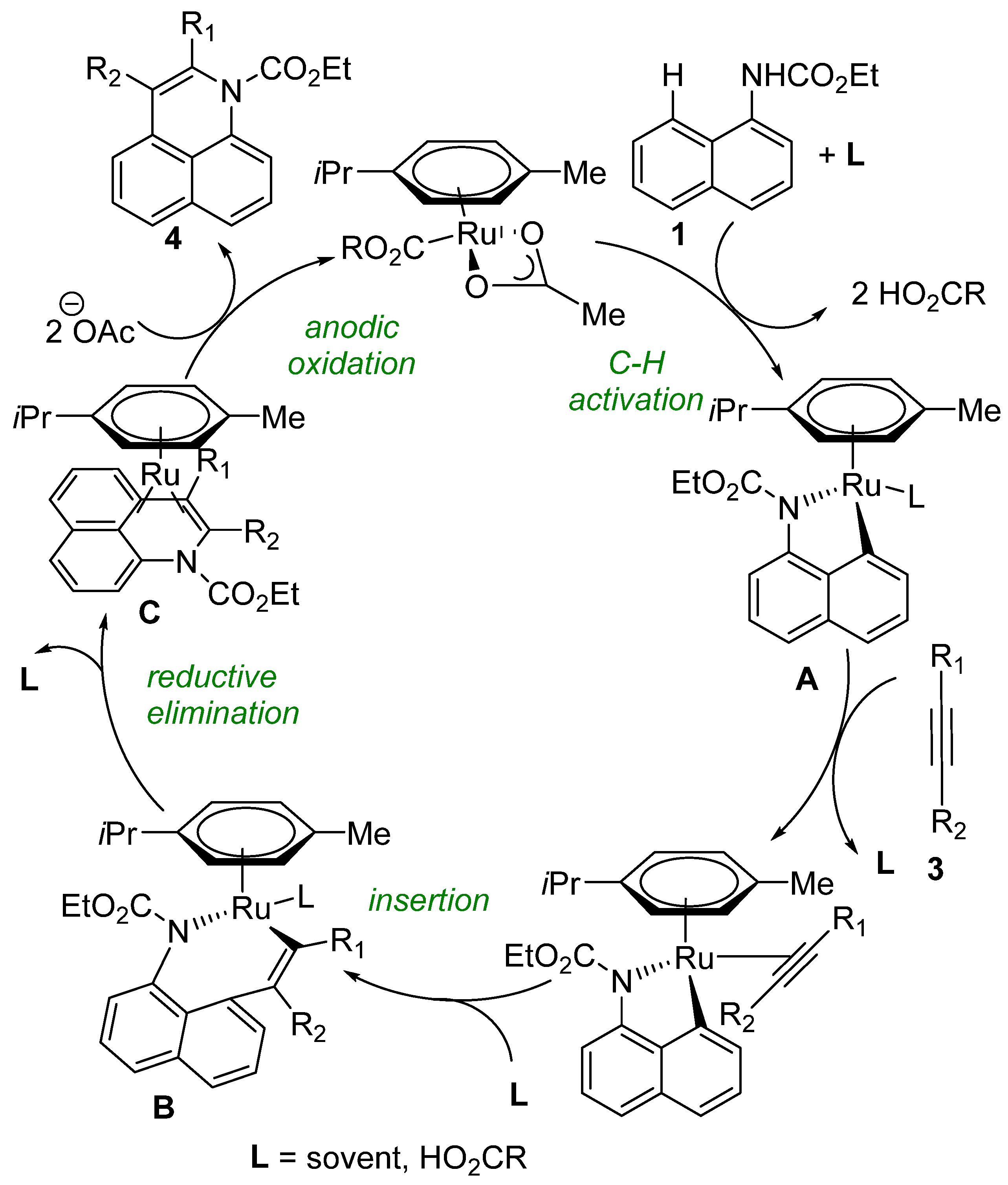 42] reported in 2018 the first example of ruthenium-catalyzed electrooxidative peri-C–H activation of aromatic carbamates