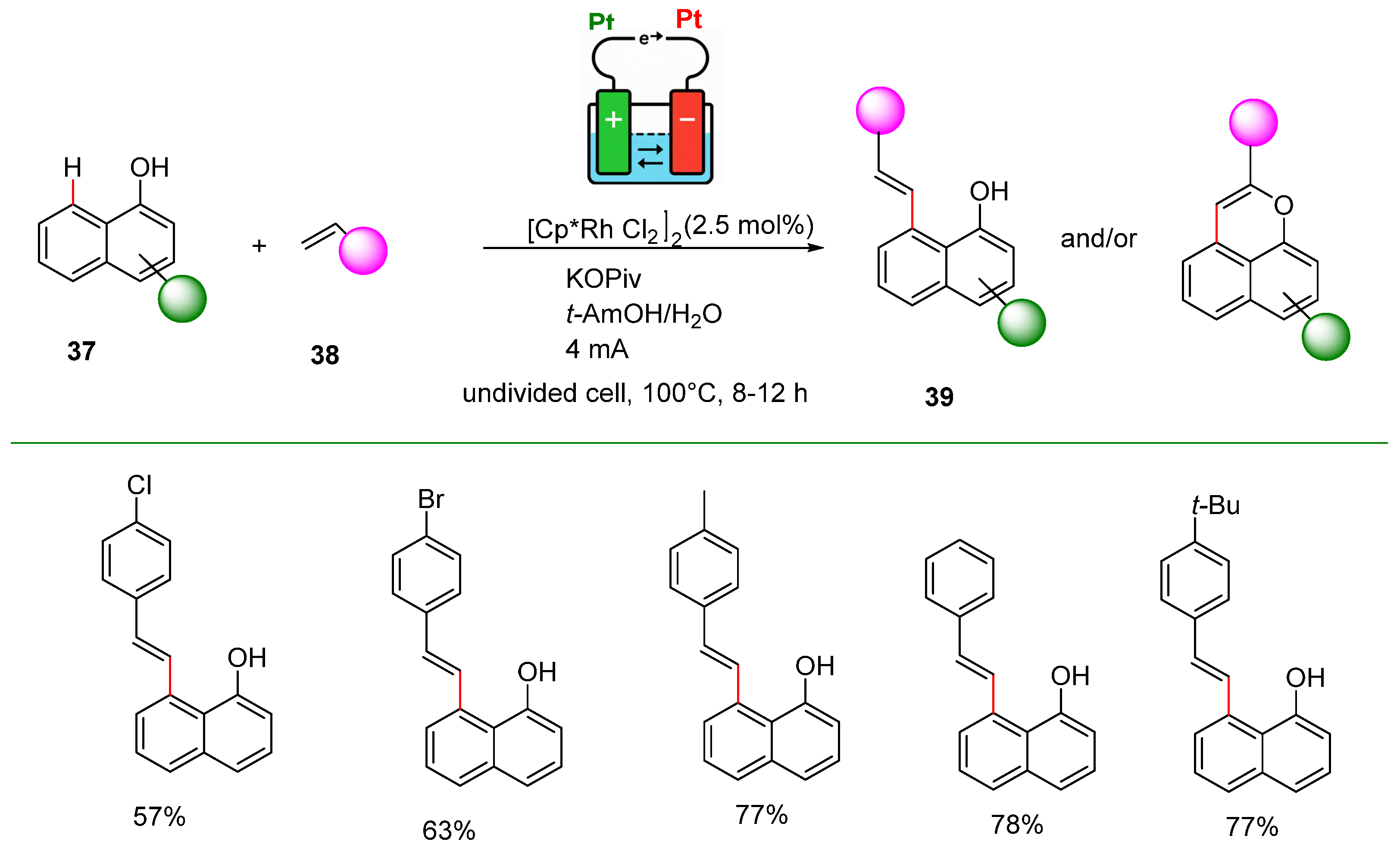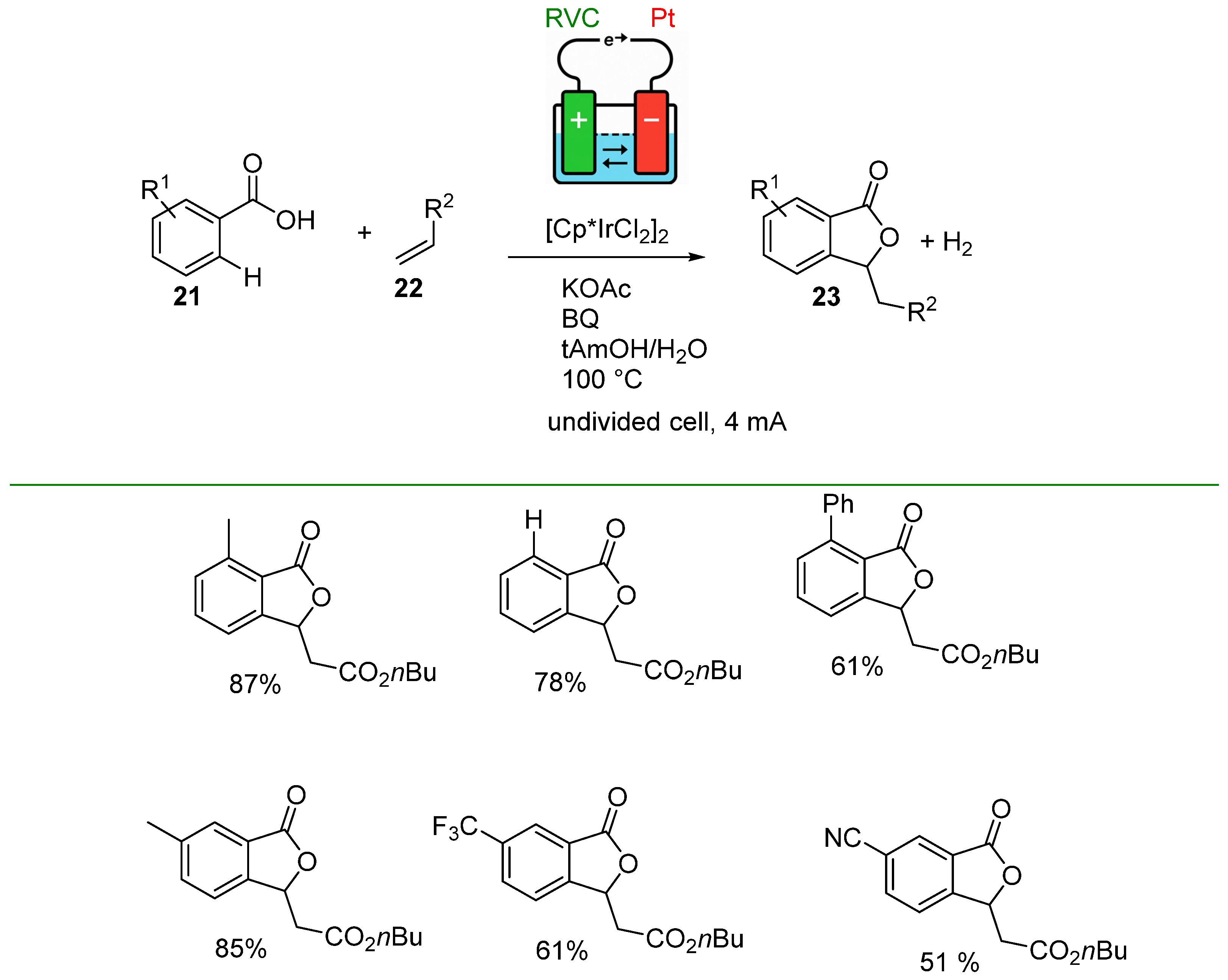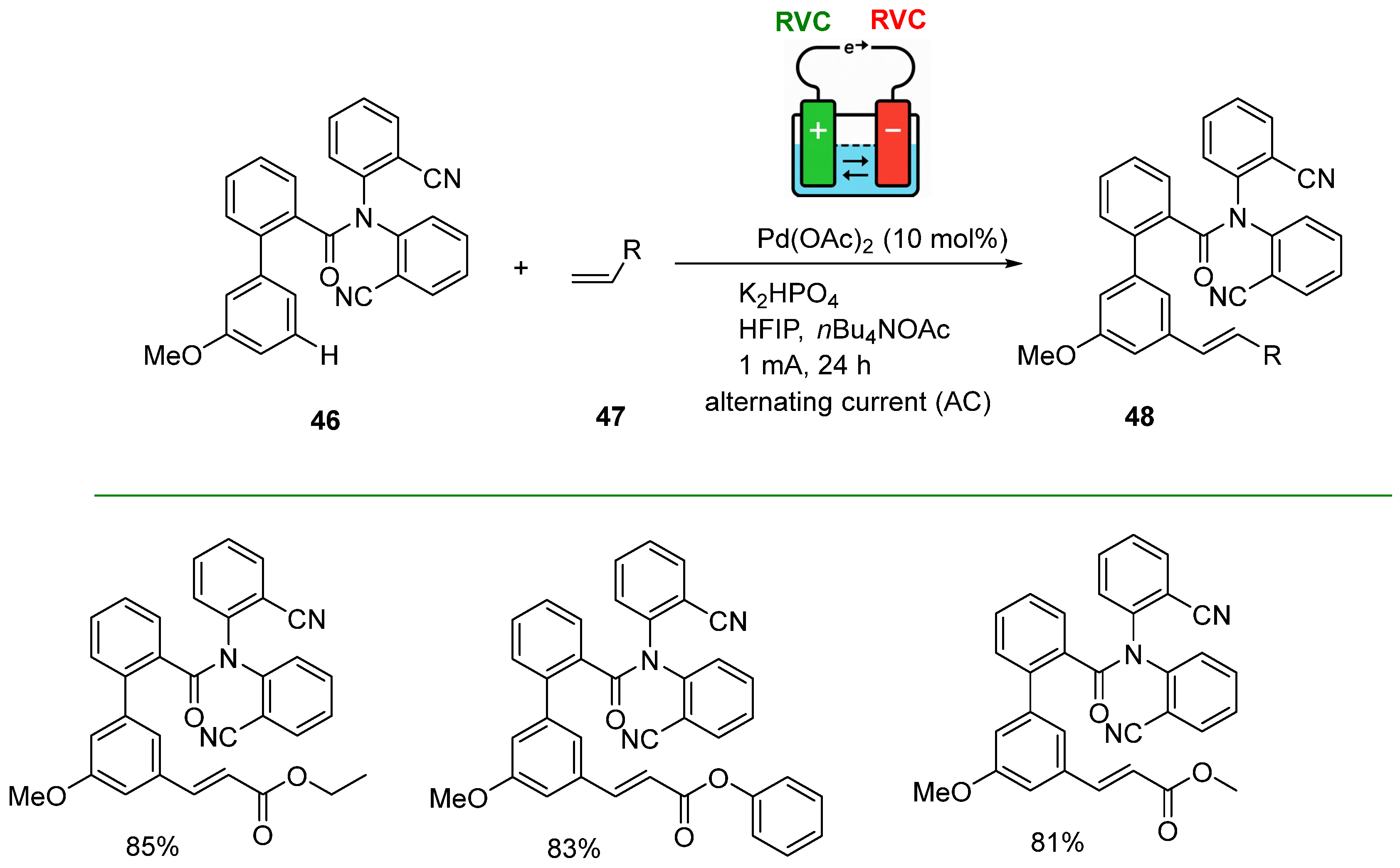47] employed an Ir-based catalyst to achieve electrooxidative C–H alkenylation of arenes