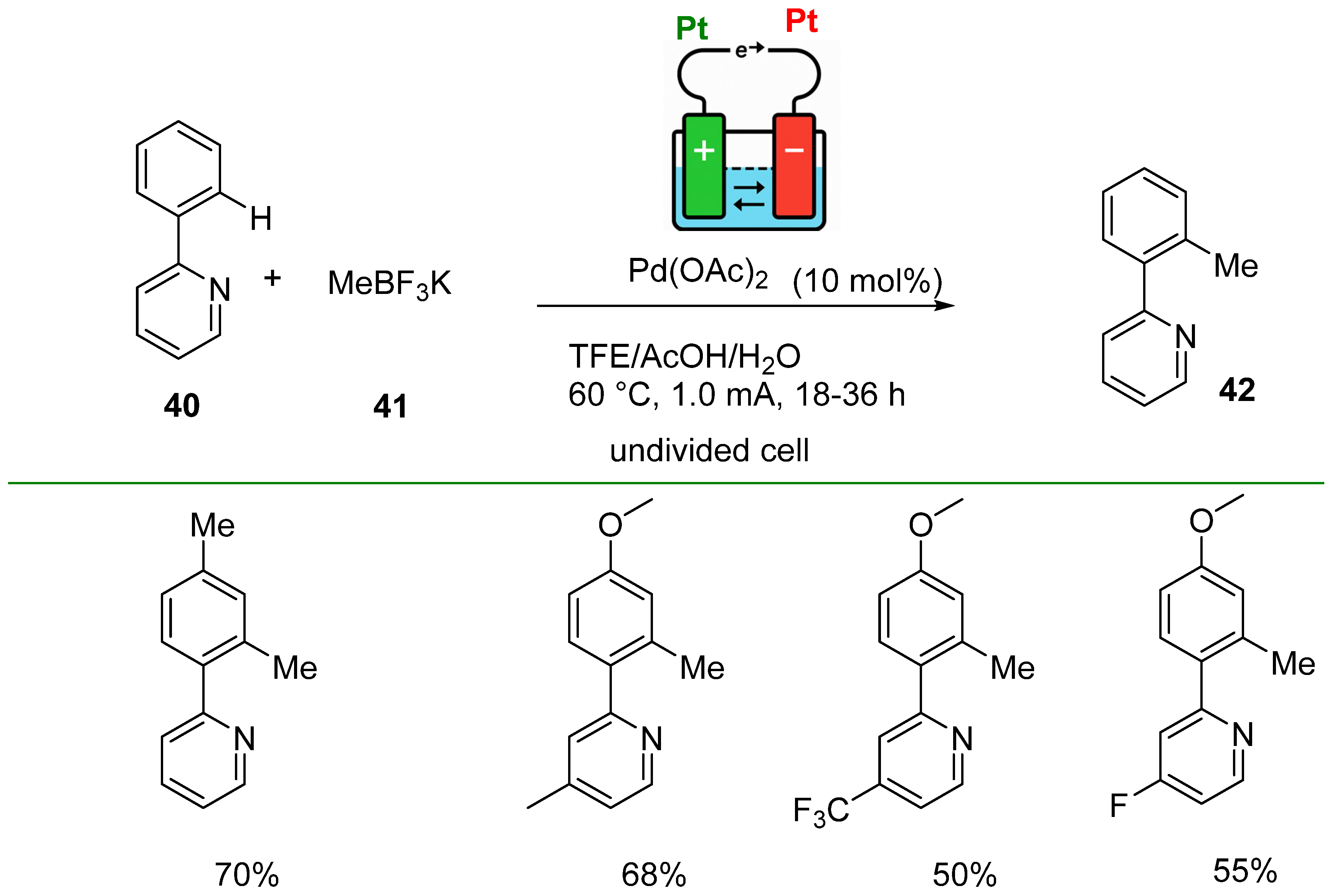 45] reported a highly versatile ortho-directed electrochemical C–H functionalization of arenes