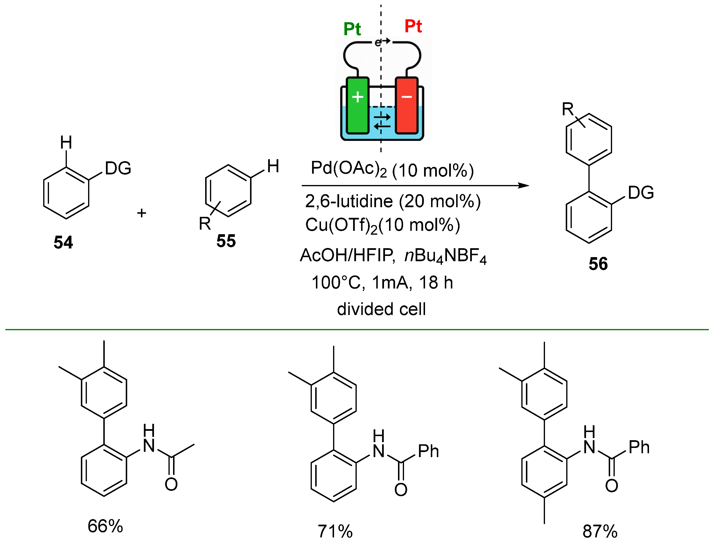60] reported an electrochemical palladium-catalyzed oxidative coupling strategy for the construction of biaryl motifs