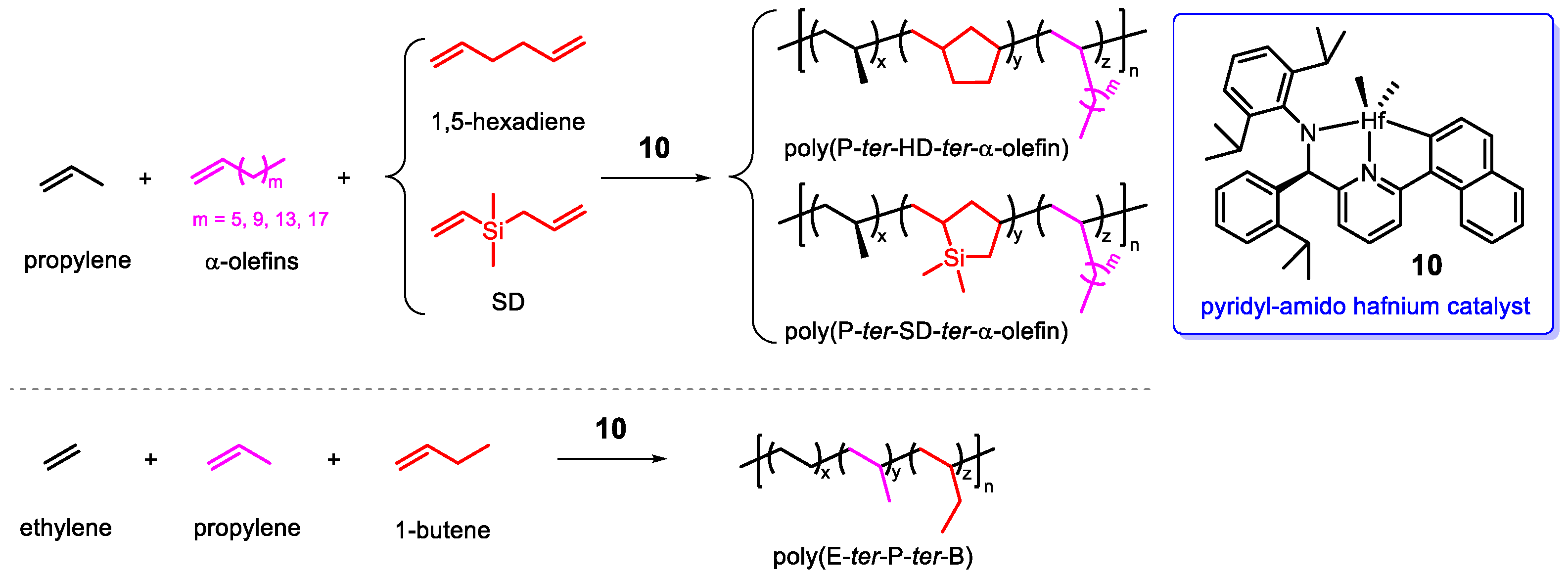 - Mu, X.; Leng, X.; Liu, C.; Yao, Q.; Li, Y. Terpolymerization of Ethylene with Hexene and Styrene Derivatives by Half-Sandwich Scandium Catalyst. Polymers 2024, 16, 2290. [Google Scholar] [CrossRef] [PubMed]