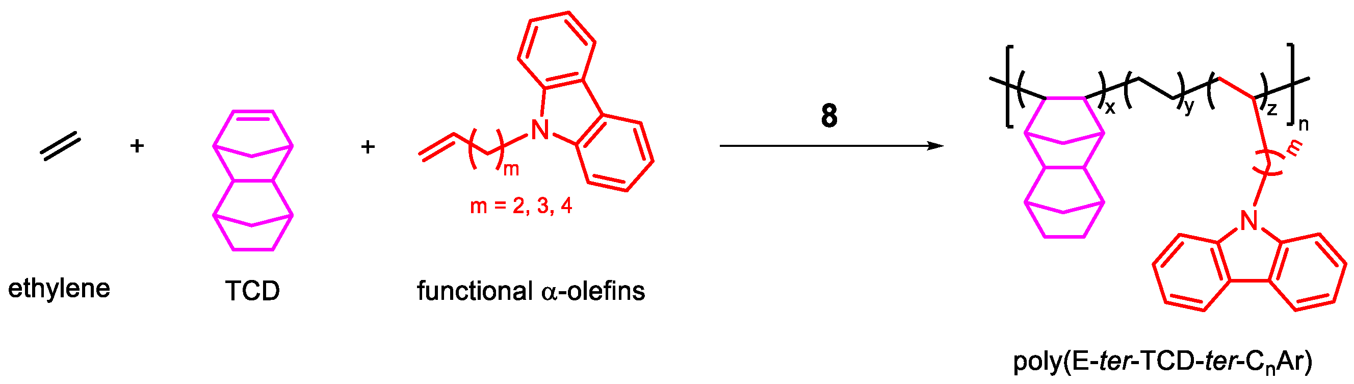 - Zhao, Y.; Zhang, Y.; Cui, L.; Jian, Z. Cyclic Olefin Terpolymers with High Refractive Index and High Optical Transparency. ACS Macro Lett. 2023, 12, 395–400. [Google Scholar] [CrossRef]