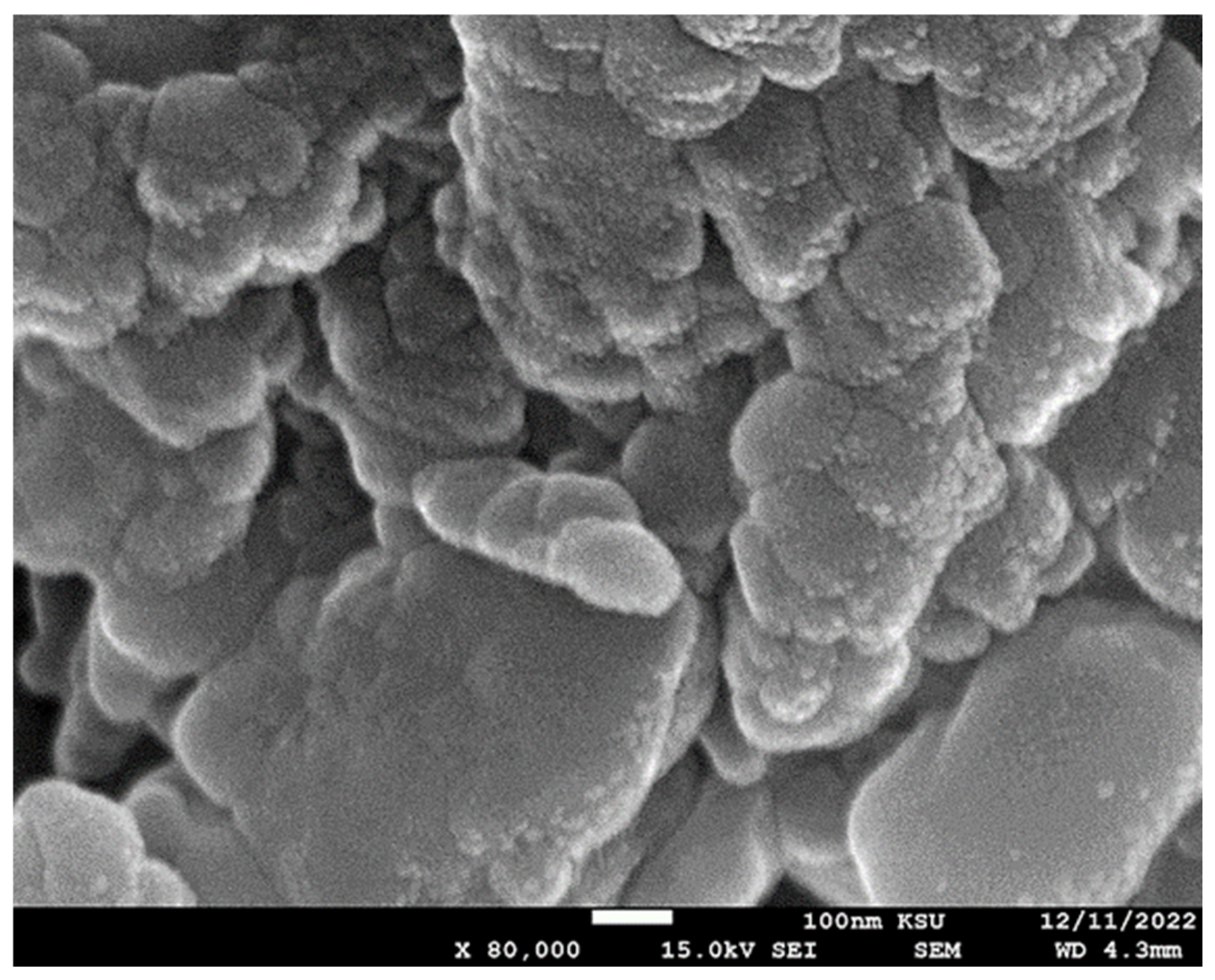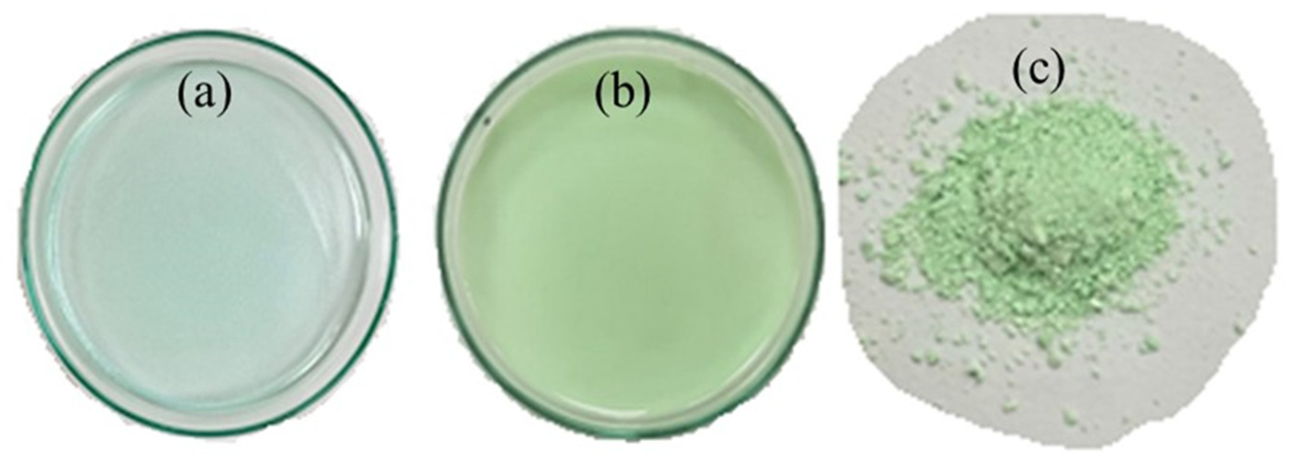 3.2. Nickel Tungstate (NiWO4) Nanoparticles’ Synthesis