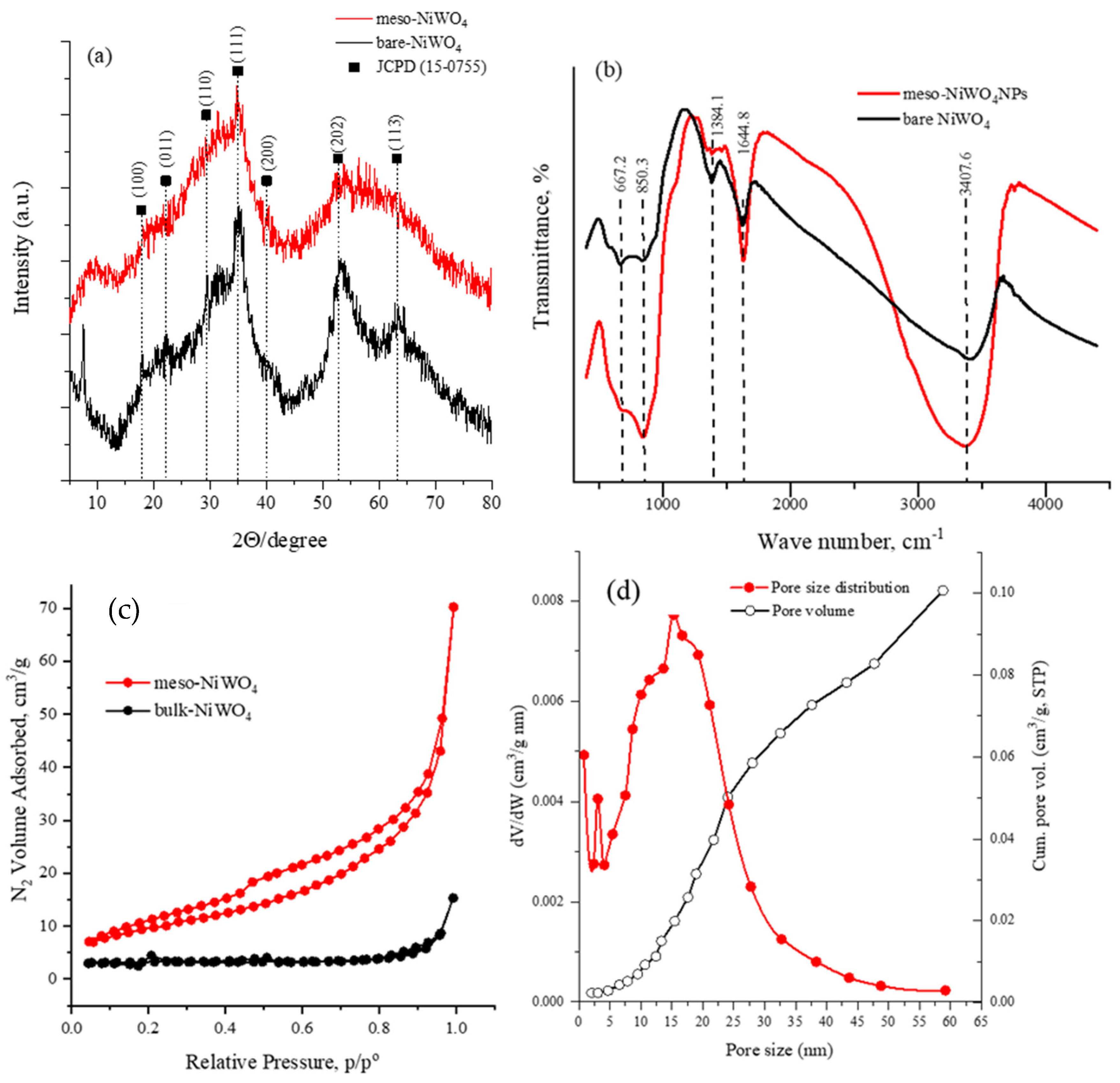 2.1. Meso-NiWO4 Catalyst Synthesis and Characterization