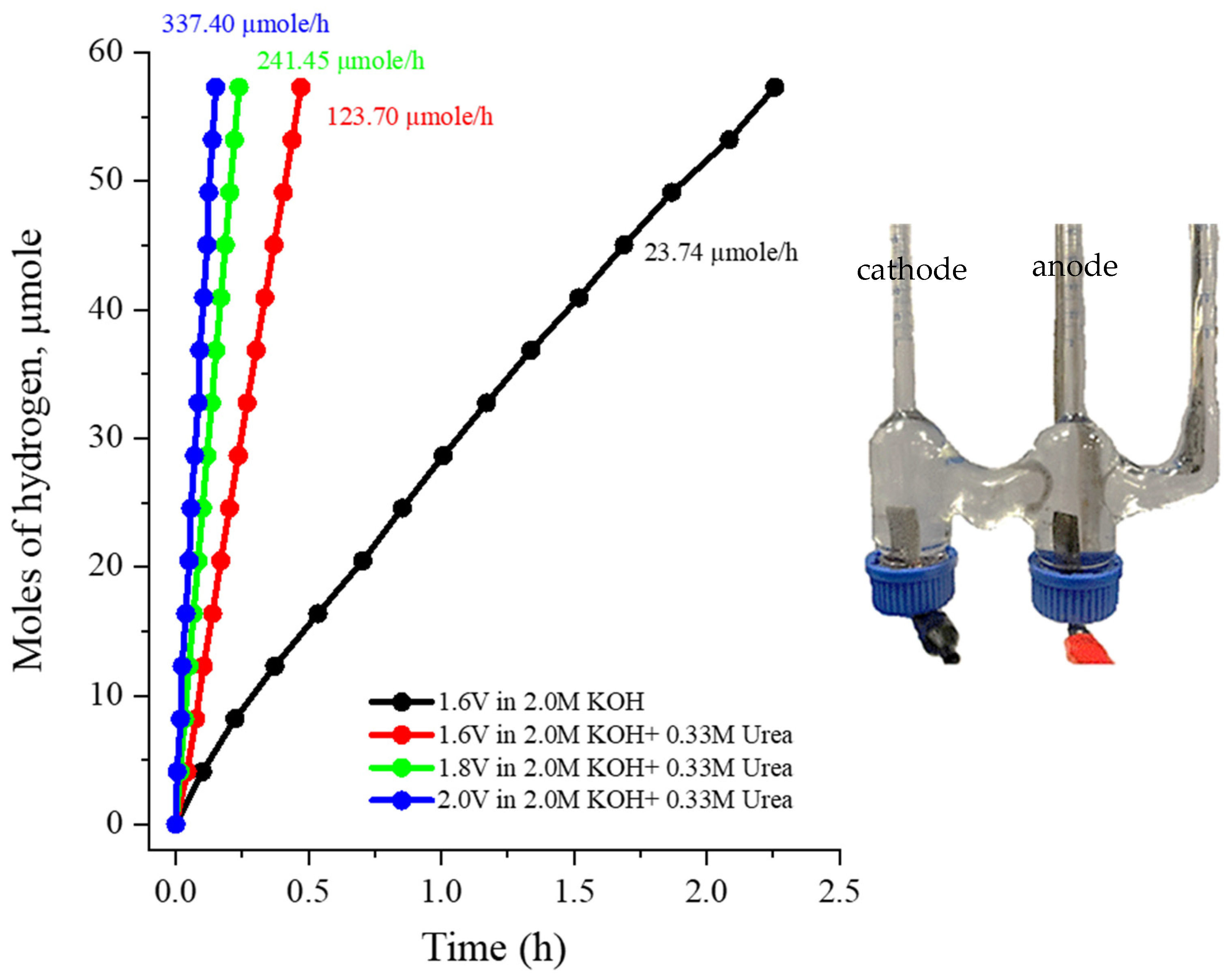 3.4. Setup of Volumetric Determination of Hydrogen Production