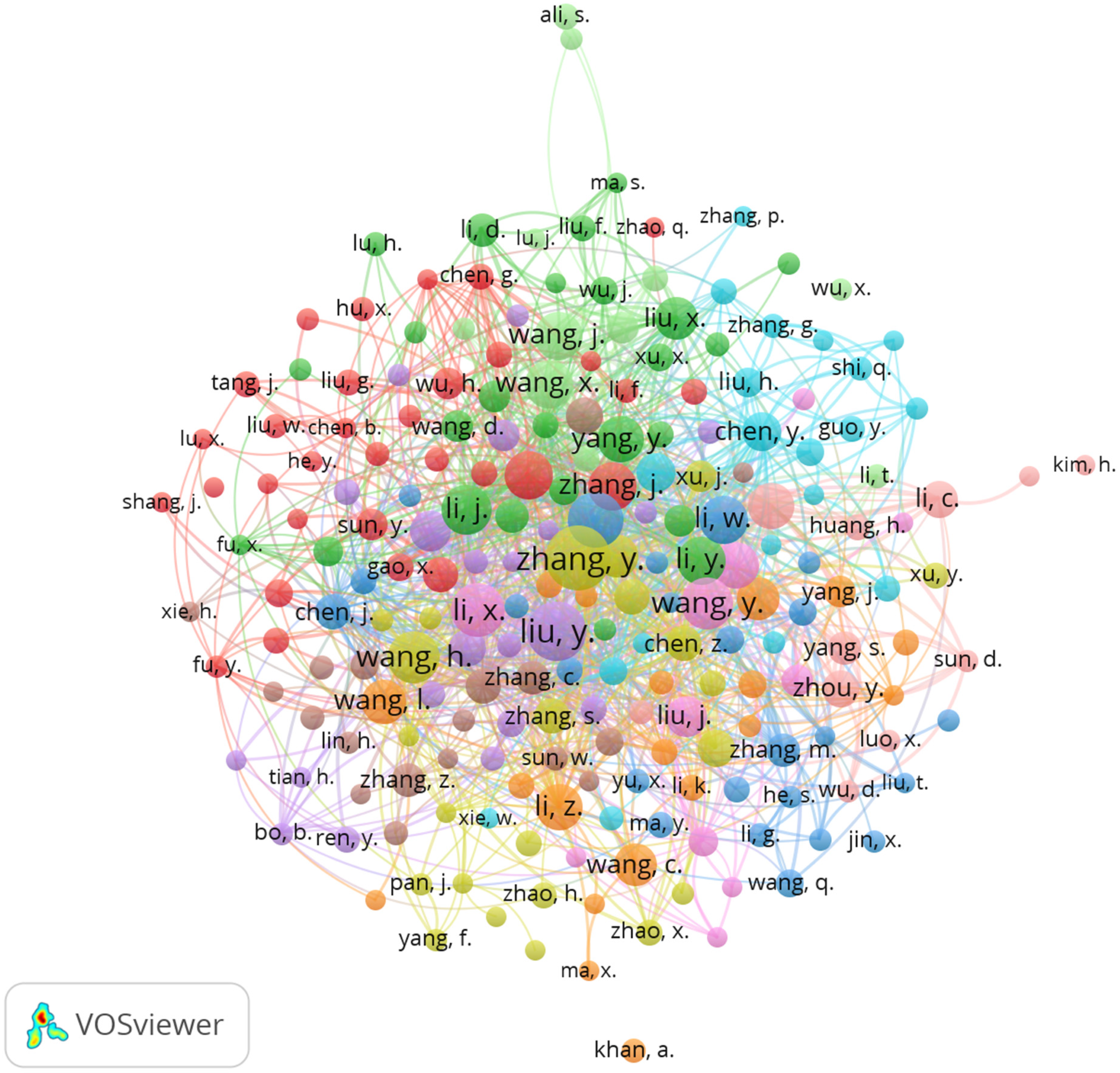 The VOSviewer-based co-authorship network, as shown in