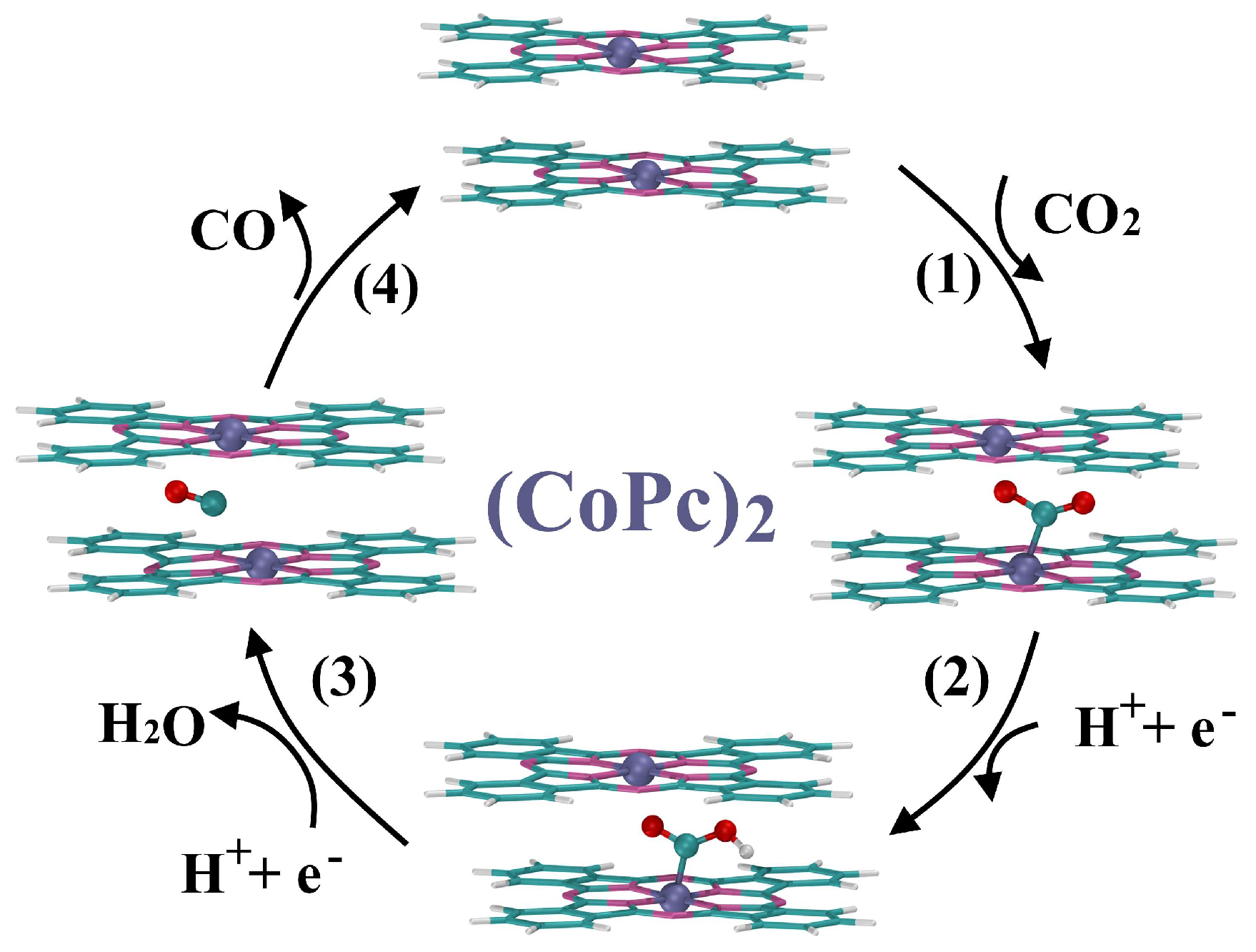- Li, H.; Wei, J.; Zhu, X.; Gan, L.; Cheng, T.; Li, J. Stimulating the Pre-Catalyst Redox Reaction and the Proton-Electron Transfer Process of Cobalt Phthalocyanine for CO2 Electroreduction. J. Phys. Chem. C 2022, 126, 9665–9672. [Google Scholar] [CrossRef]