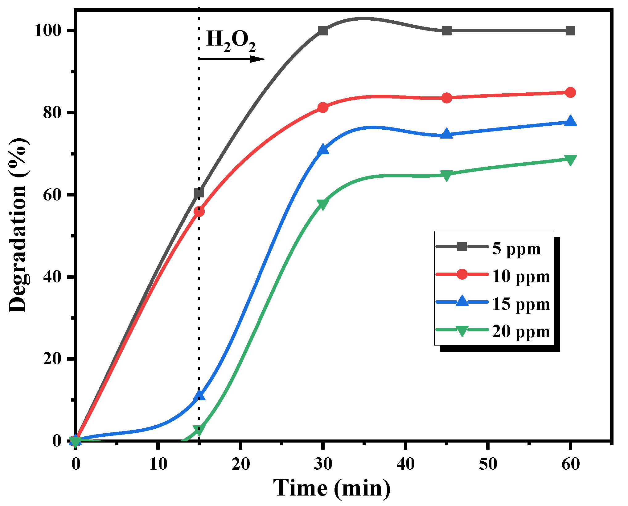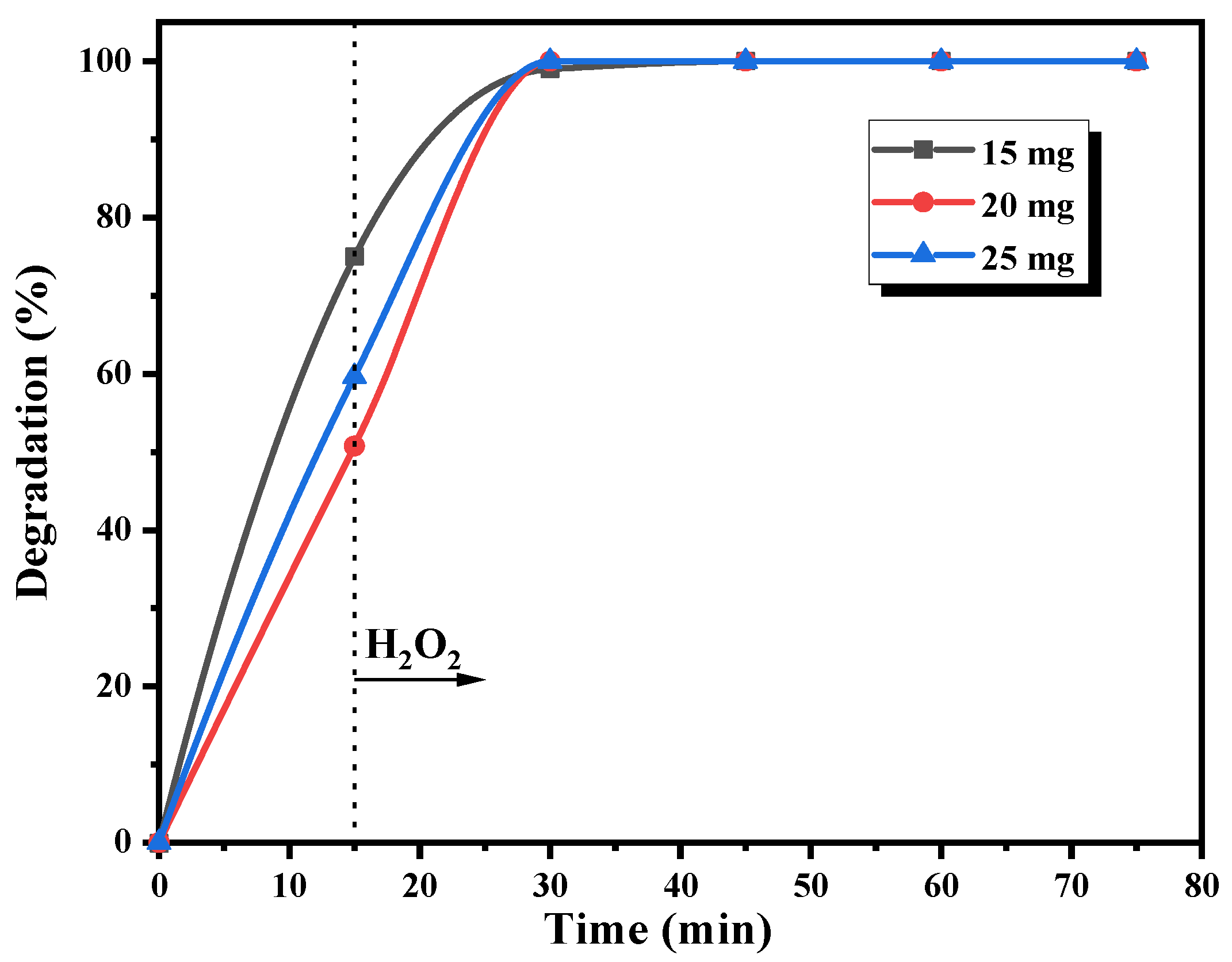 2.5.4. Effect of H2O2 Amount