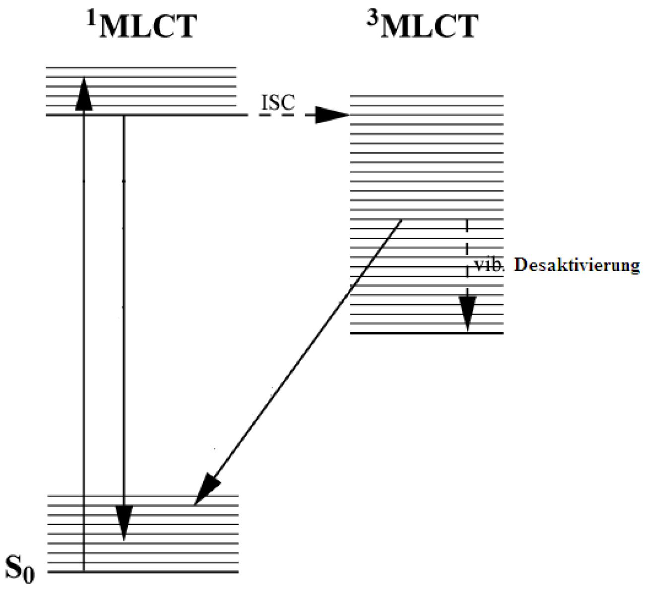 Formation of the 3MLCT state via photon absorption.