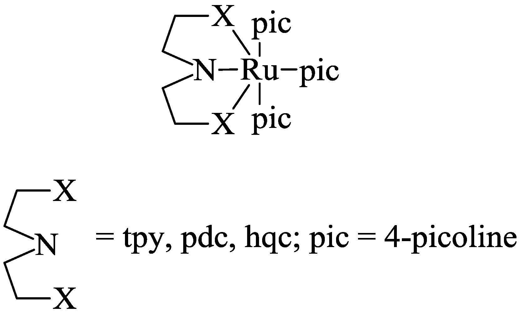Representation of Ru(II)terpyridine and Ru(II)bipyridine complexes with elongated lifetime of the activated state [33,38].