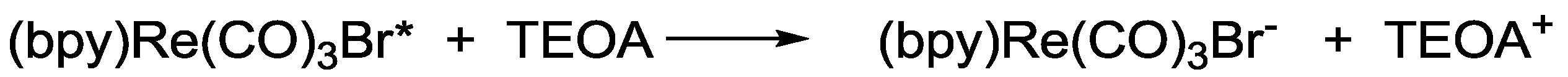 In most of the reports on the photocatalytic reduction of CO2 the oxidation site is circumvented with the help of a sacrificial donor that reduces the activated 3MLCT state of the photosensitizer. This generates the one-electron reduced species of the photosensitizer which is important for the further reduction process (reductive quenching). In case of rhenium(I) complexes TEOA (triethanolamine) is most frequently used as donor (E0[TEOA/TEOA+] = 0.82 V) (Scheme 3) [12].