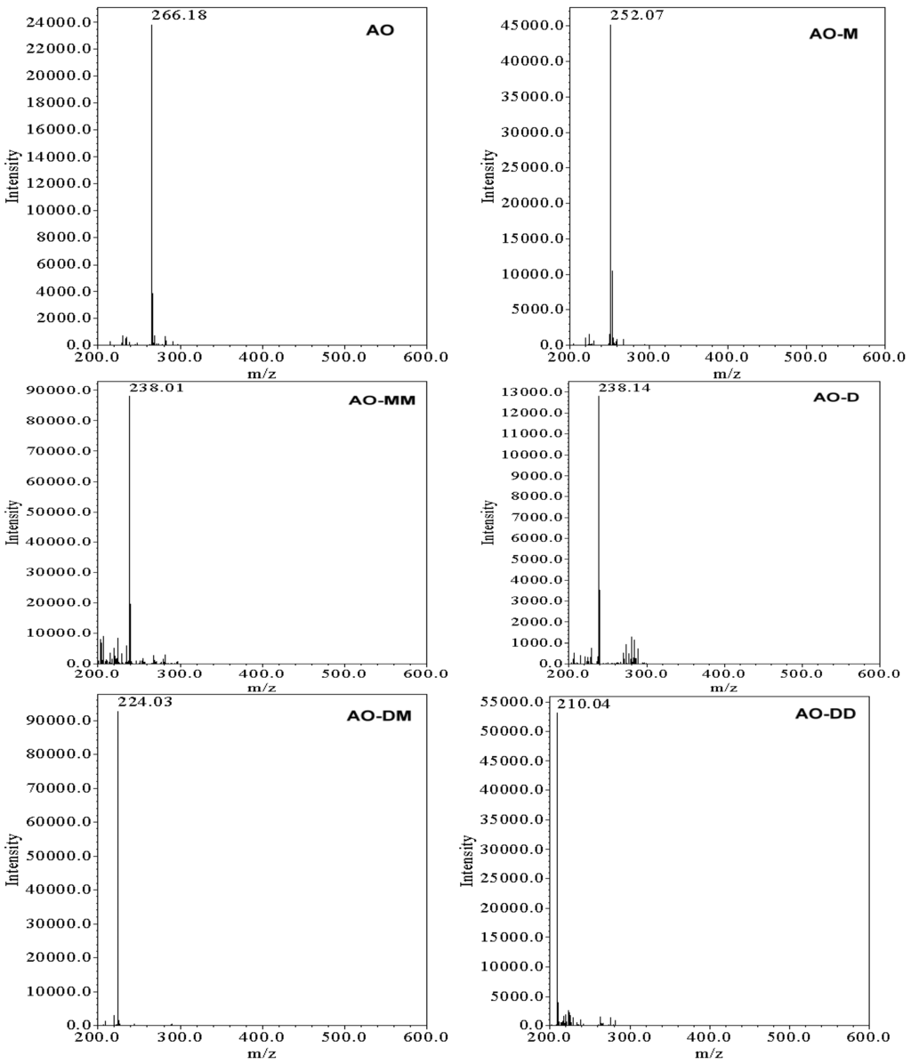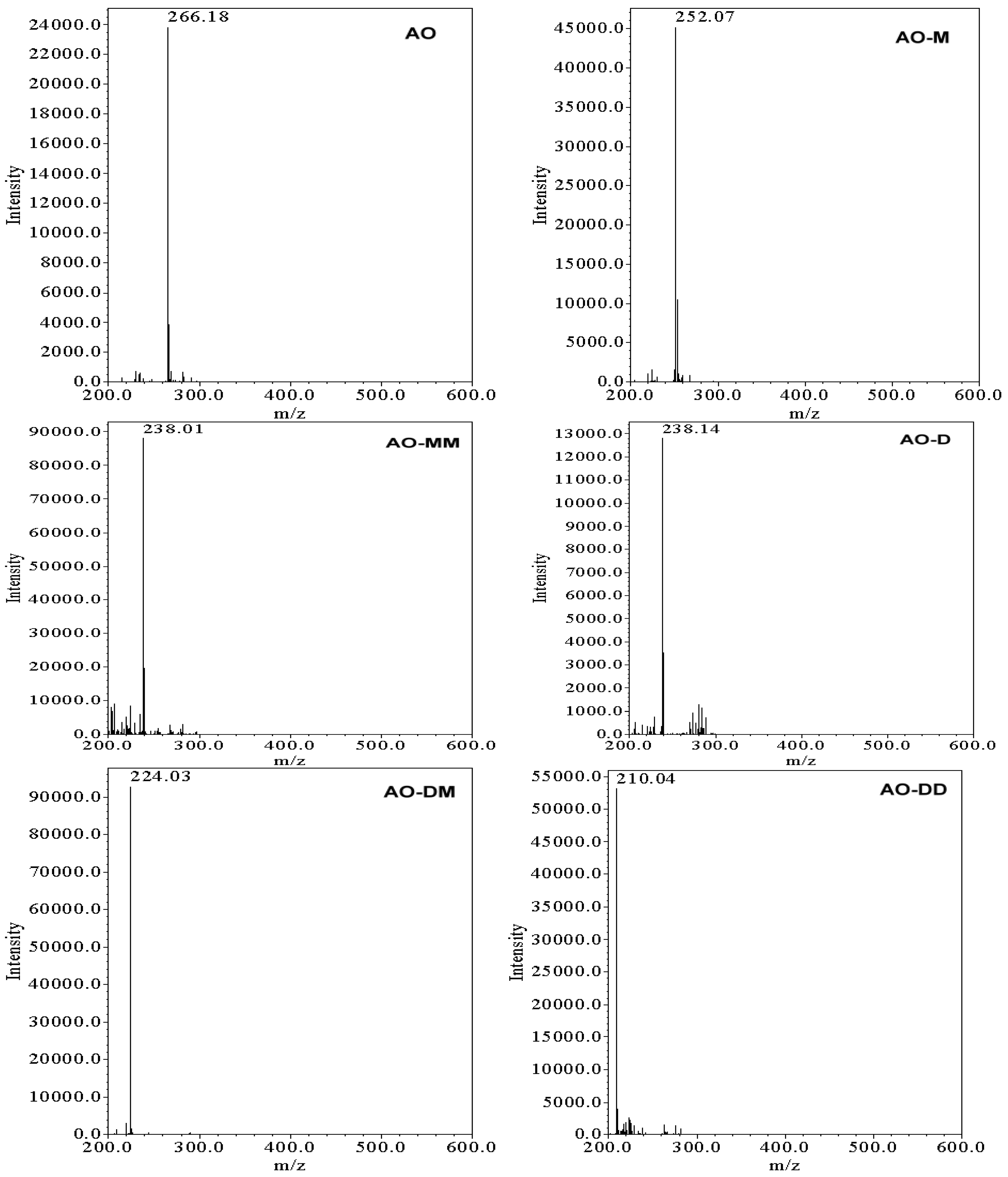 z = 266.18, in liquid chromatogram was AO. The other components were